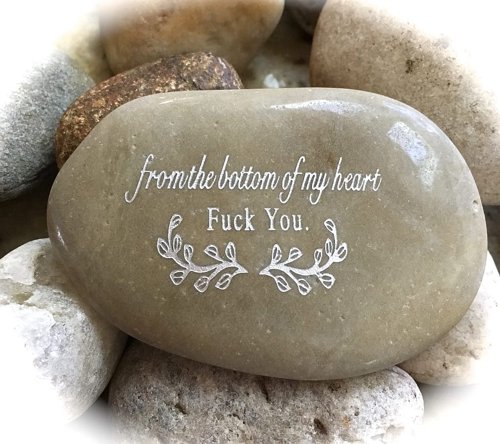 Bring a little irreverent humor to any space with this engraved rock featuring the quote:
