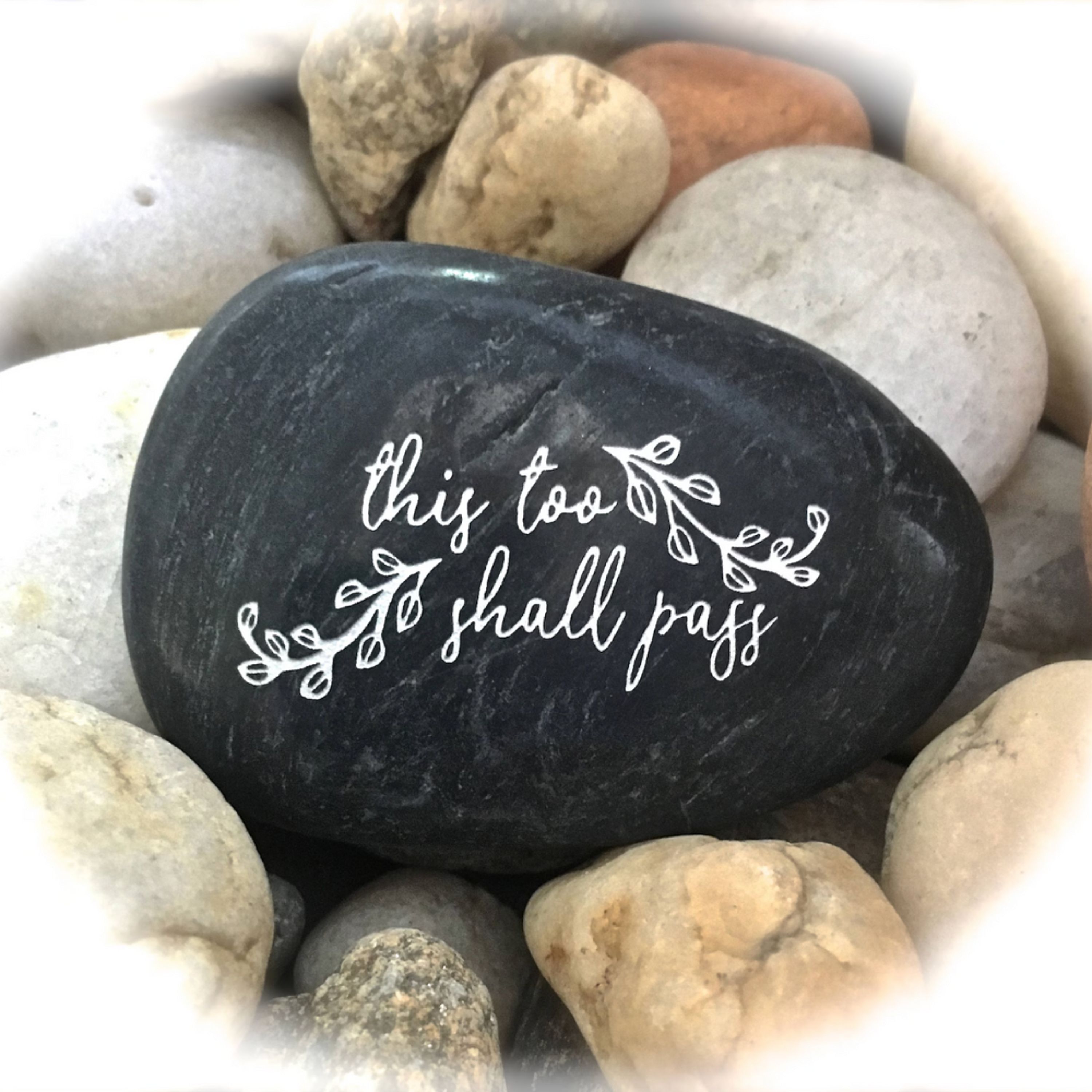Great stocking stuffer! *Please note - this listing is for the exact engraved design you see in the photos - not the color of the stone (customized engraving is not available). Engraved messages are enhanced with either black or silver. If you have a specific request of color/tone, please let us know. Our polished river rocks have natural imperfections that are characteristic of all natural stone. The colors, shapes, and sizes of our stones (2.5" - 4.0") vary. While we do put careful attention into making sure each of our word stones is beautiful, they are not guaranteed to be the exact colors and shapes as pictured. We do not replace stones unless broken in shipment.