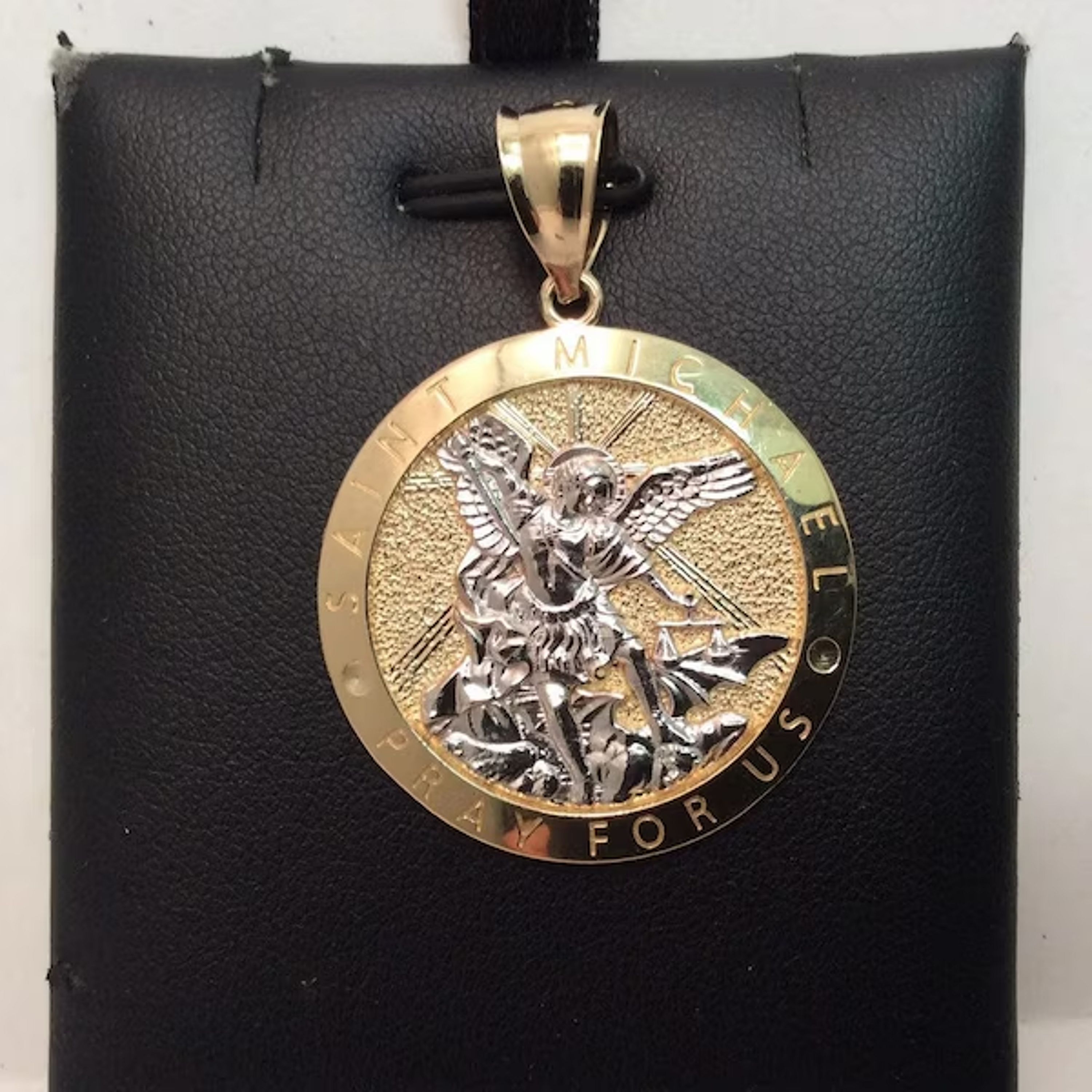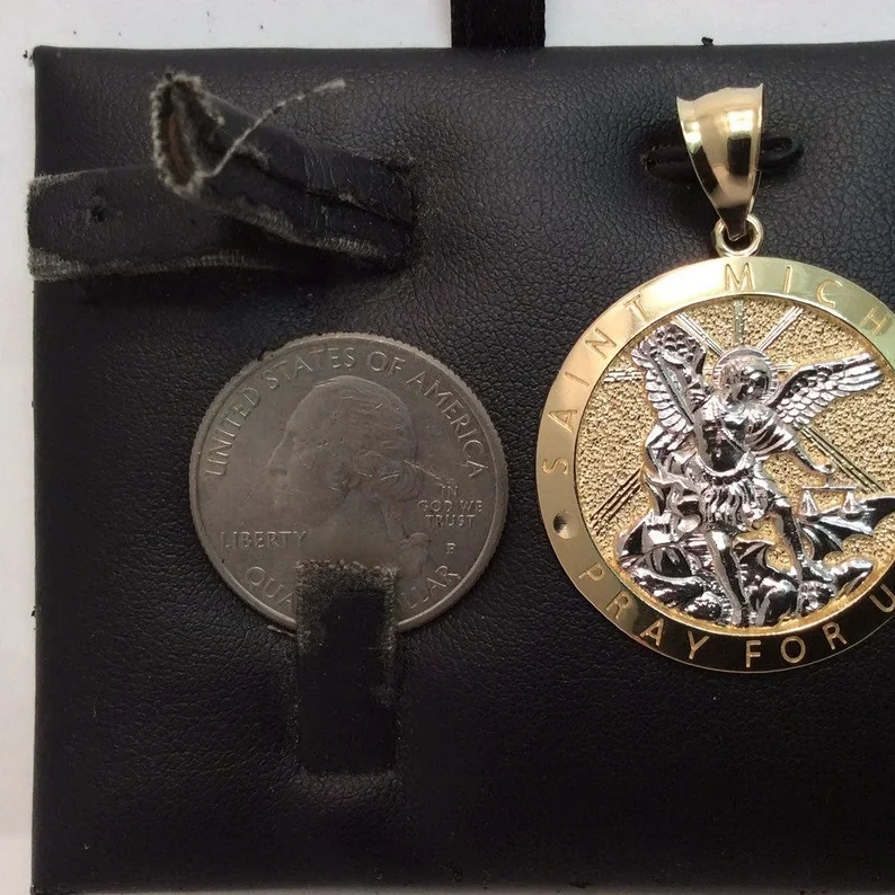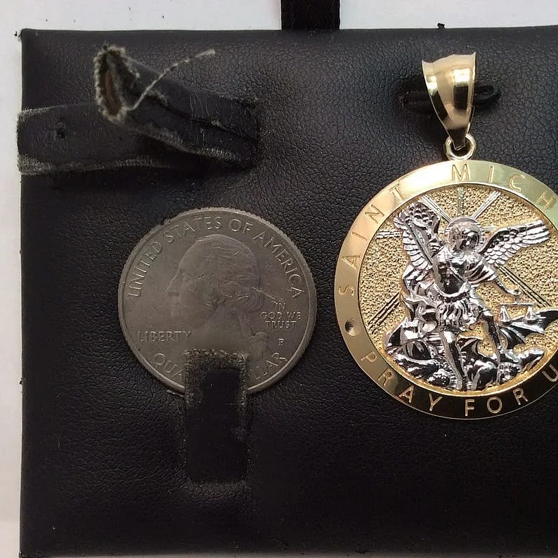10k Yellow real Gold Solid Men's Saint Michael Archangel and the Devil Medallion Pendant 4.50gr