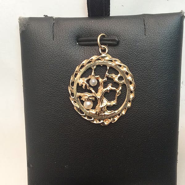 14K Yellow Real Solid Gold Tree of Life Pearl Medallion Charm Pendant 3.30 Grams