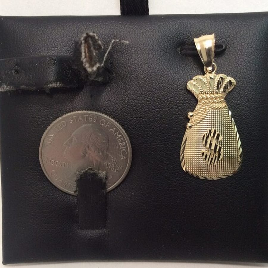 10K YELLOW real GOLD Dollar Sign Pendant Money Bag charm 2.40grams