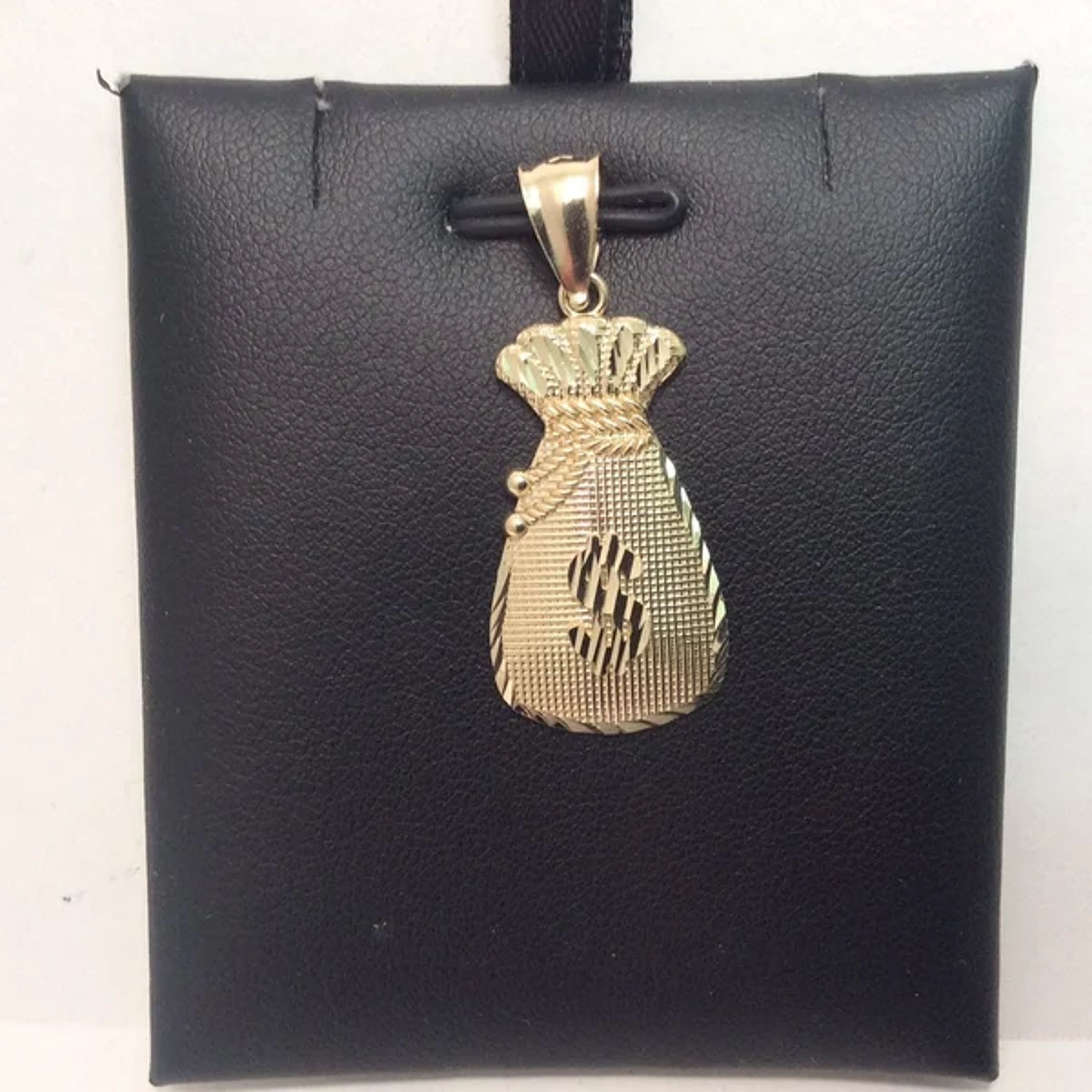 10K YELLOW real GOLD Dollar sign pendant Bill Money Bag charm 2.40 grams Metal Type: 10K Yellow Real Gold Weight: 2.40 Grams Width: 3/4 of a Inch Wide Length: 1 1/2 Inches Tall with bail COMES WITH A GIFT BOX
