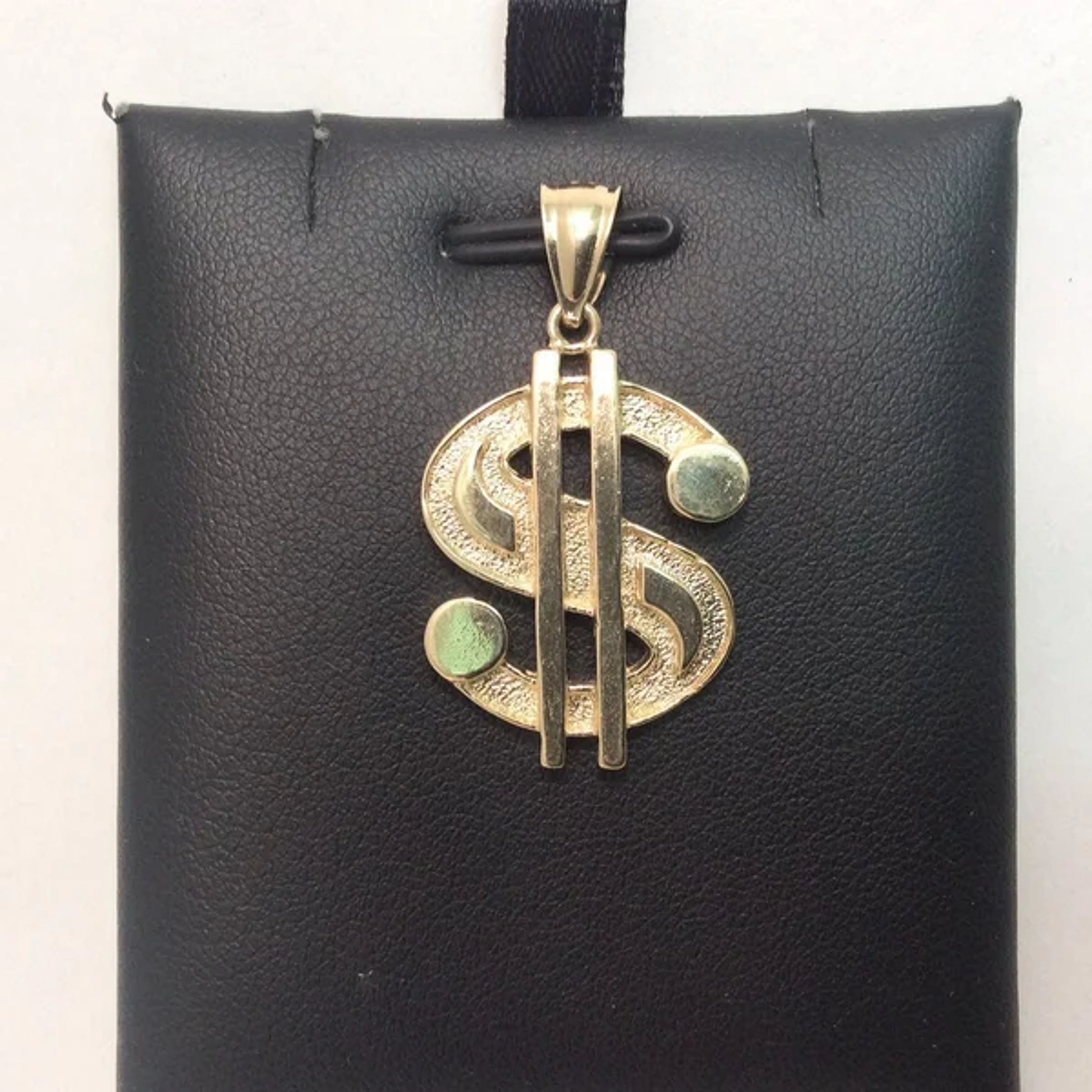 10K SOLID YELLOW real GOLD Dollar sign pendant Bill Money charm 4.50 grams Metal Type: 10K Solid Yellow Real Gold Weight: 4.50 Grams Width: 3/4 of a Inch Wide Length: 1 1/2 Inches Tall with bail COMES WITH A GIFT BOX