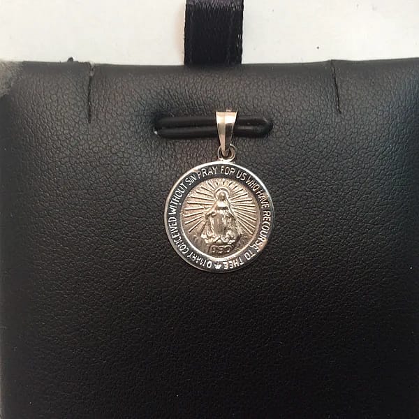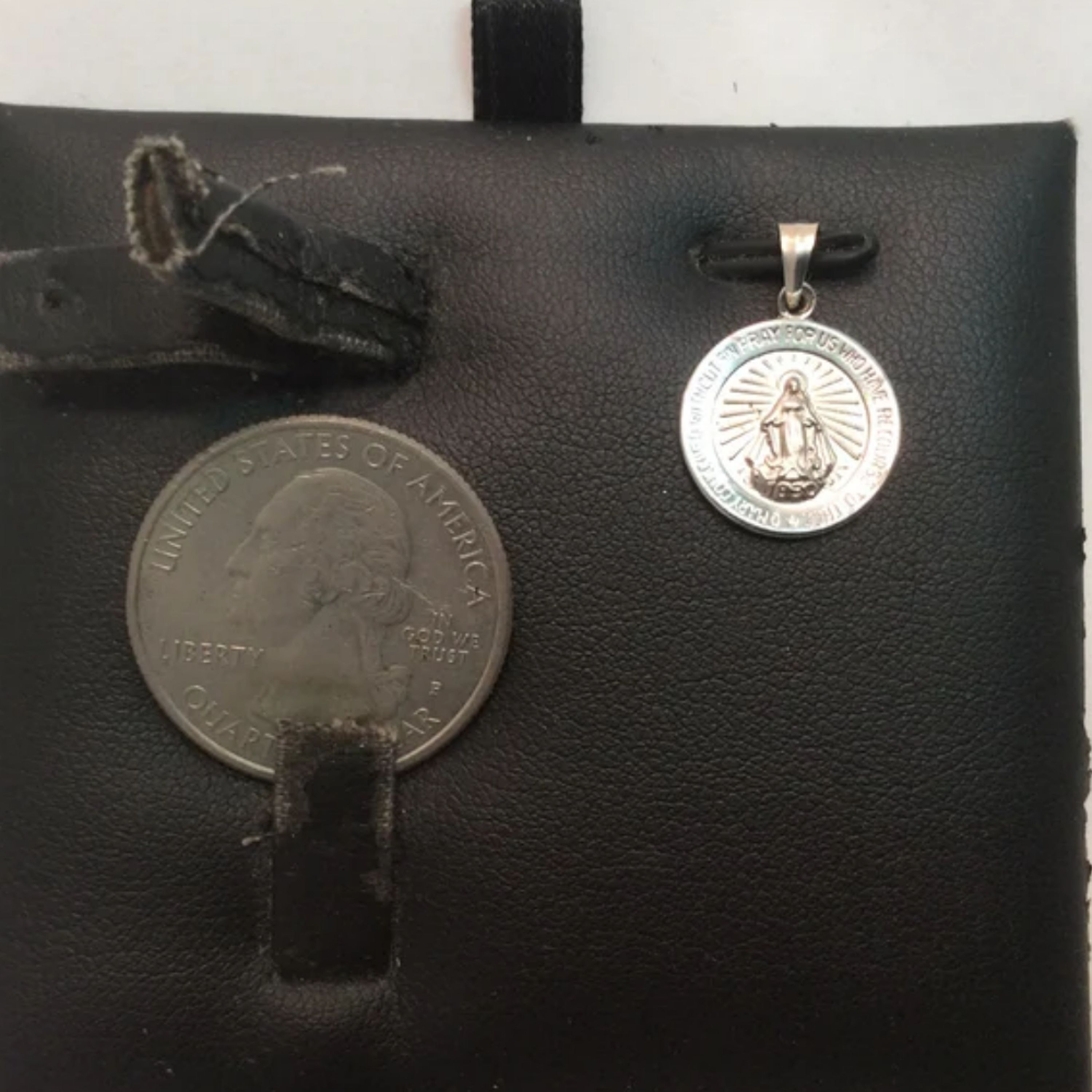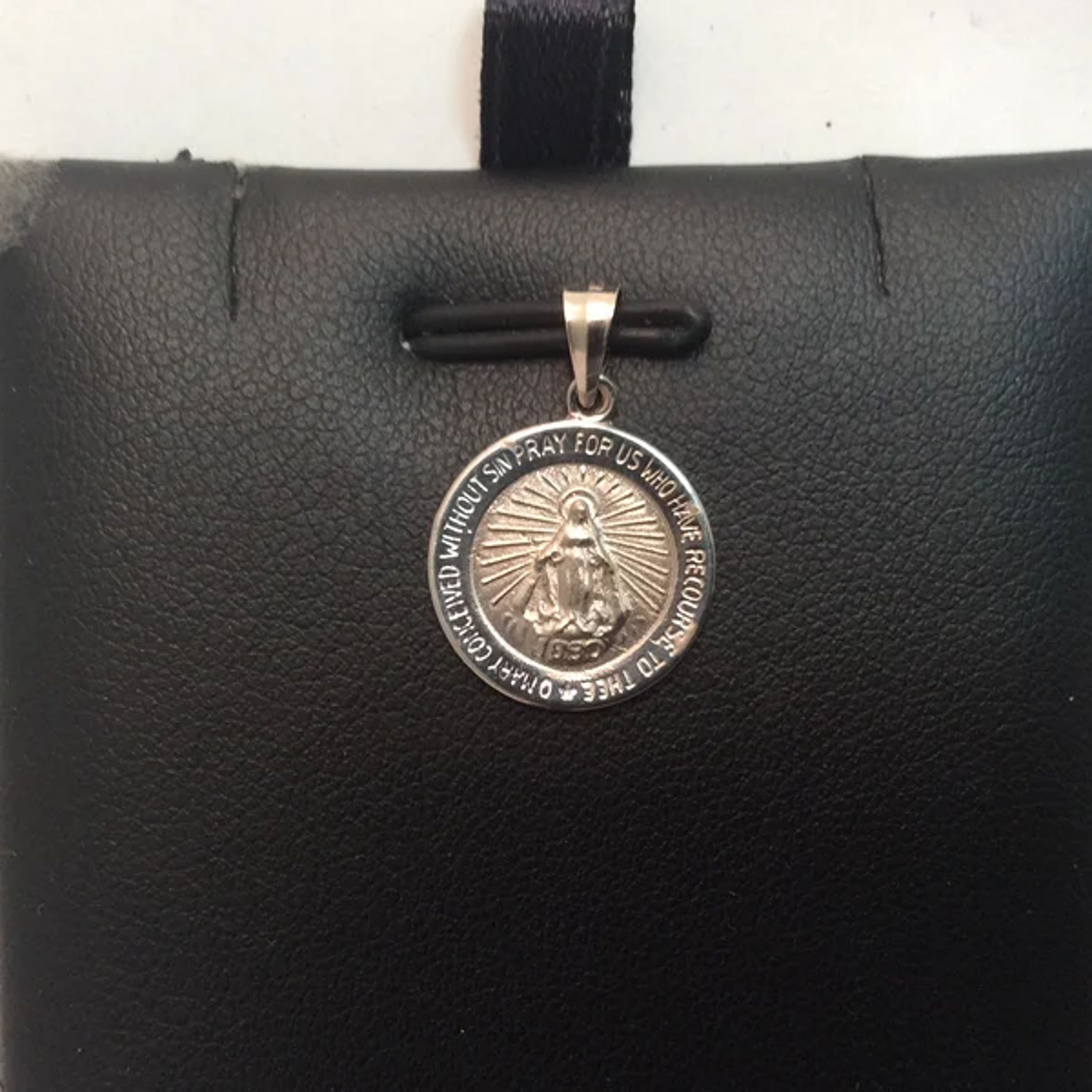14K WHITE REAL SOLID GOLD ROUND VIRGIN MARY MIRACULOUS MEDAL CHARM PENDANT 1.20GR Metal Type: 14K Solid White Real Gold Weight: 1.20 Grams Width: 1/2 inch Wide Length: 3/4 Inches Long with bail comes with a gift box Retail $869.00