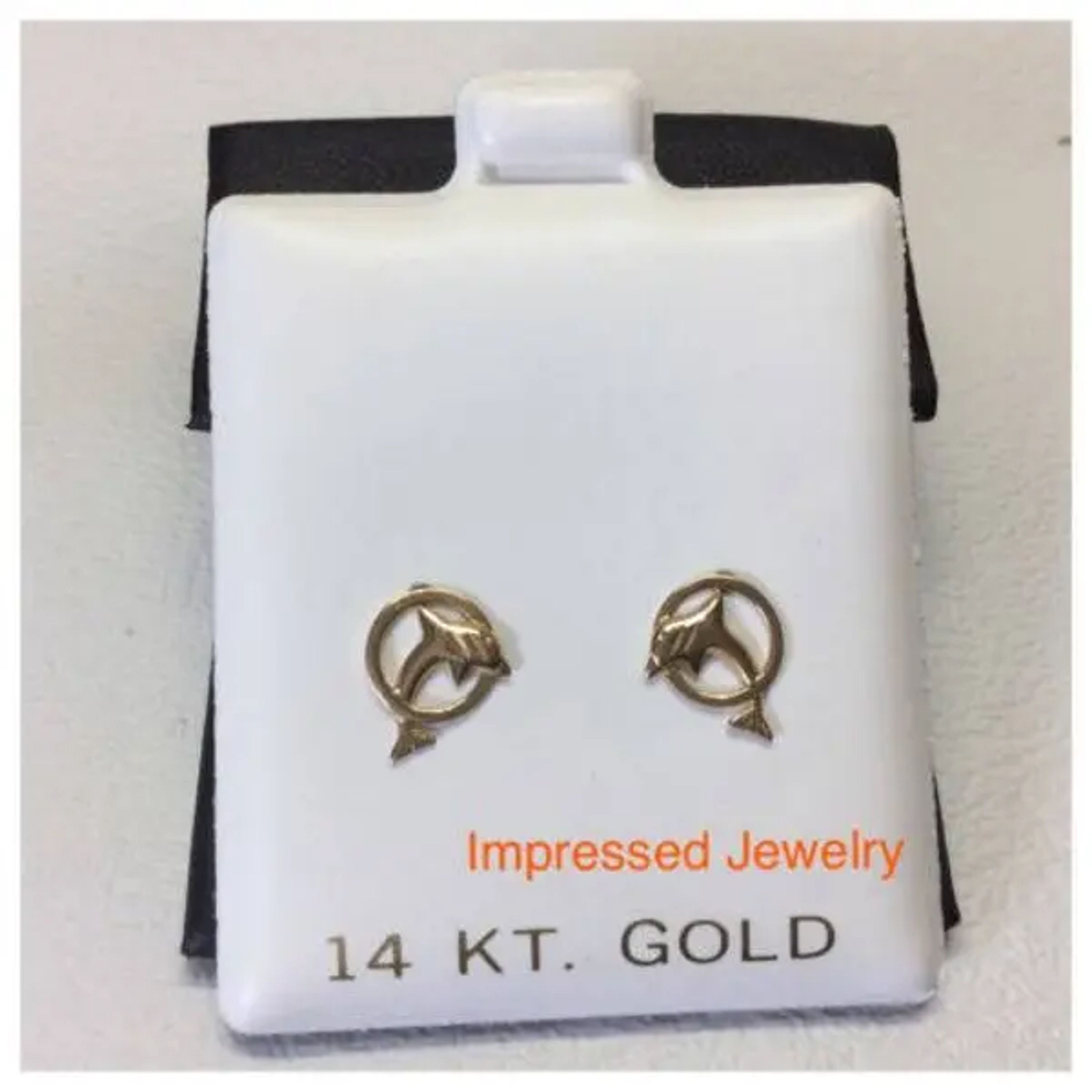 14k Yellow Real Gold Dolphin in a circle Screwback children baby Earrings