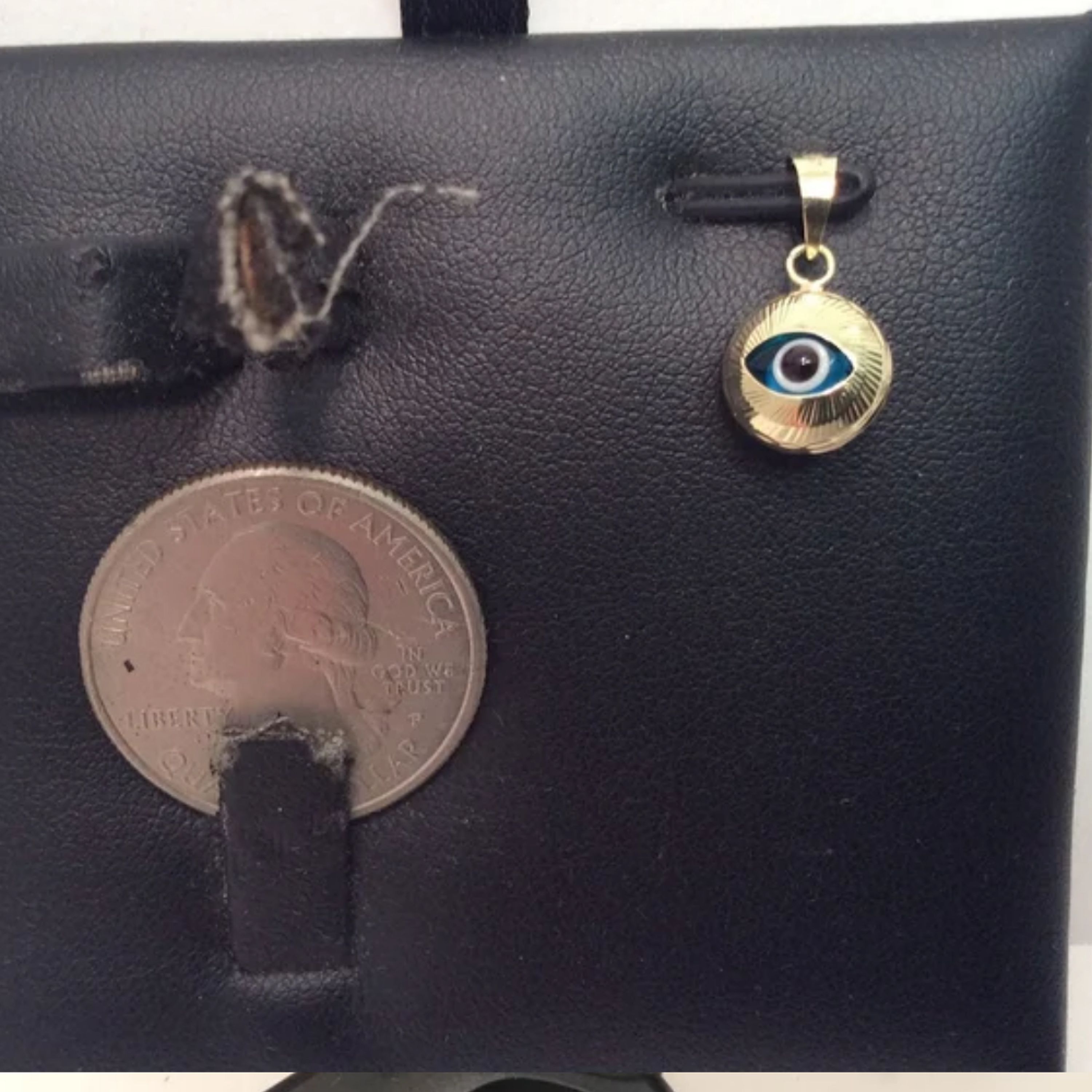 Men's/Women's 14k solid yellow Real Gold EVIL EYE protect pendant charm .70grams