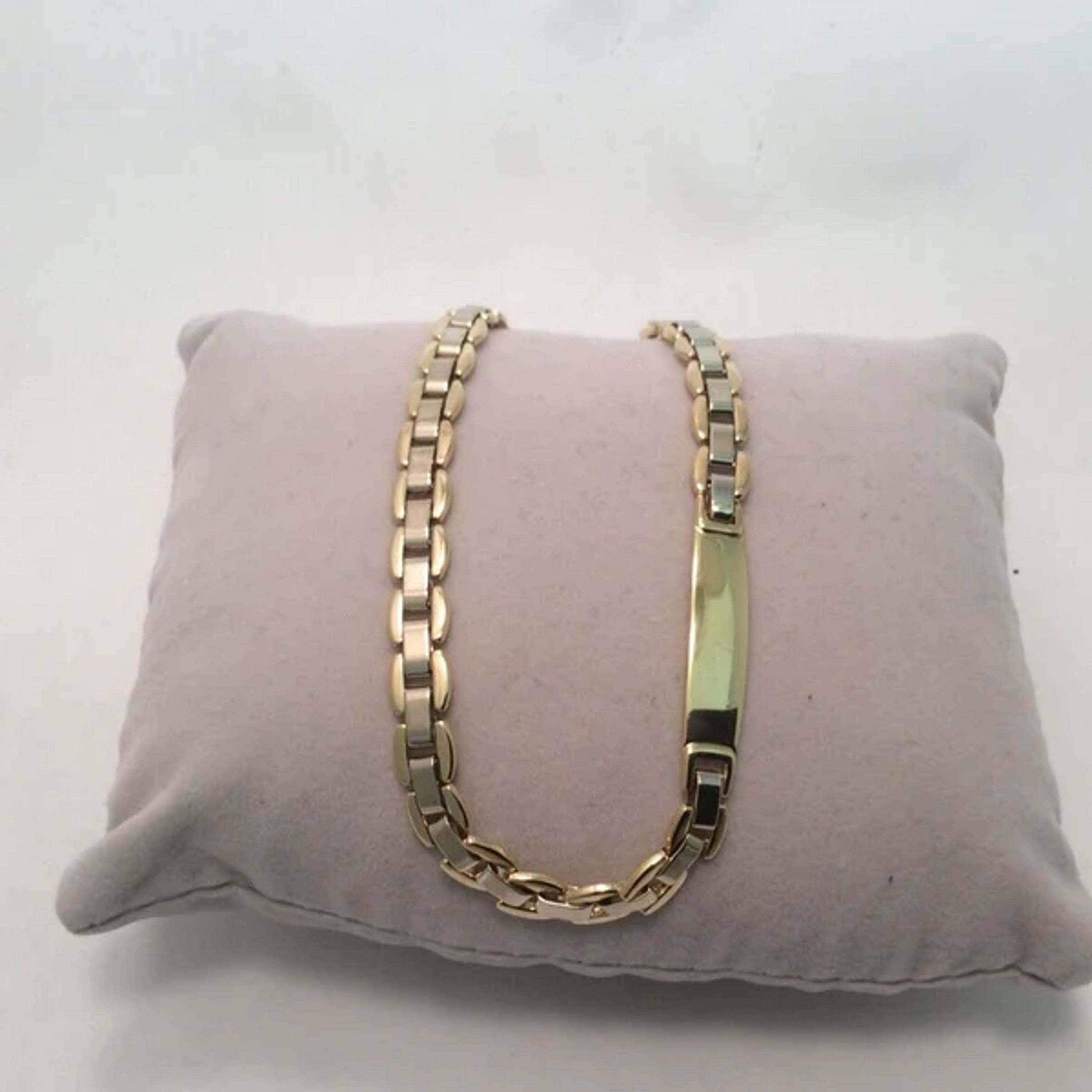 MEN LADY 18K YELLOW SOLID REAL GOLD ESSEMME ID FANCY LINK BRACELET 8 1/2'' 17.20GR Solid Heavy Links Metal Type: 18K Solid Real Yellow 2 Tone Gold Weight: 17.20 Grams Width: 6.40mm Wide Length: 8 1/2 Inches Long comes with a gift box Retail $4798.00