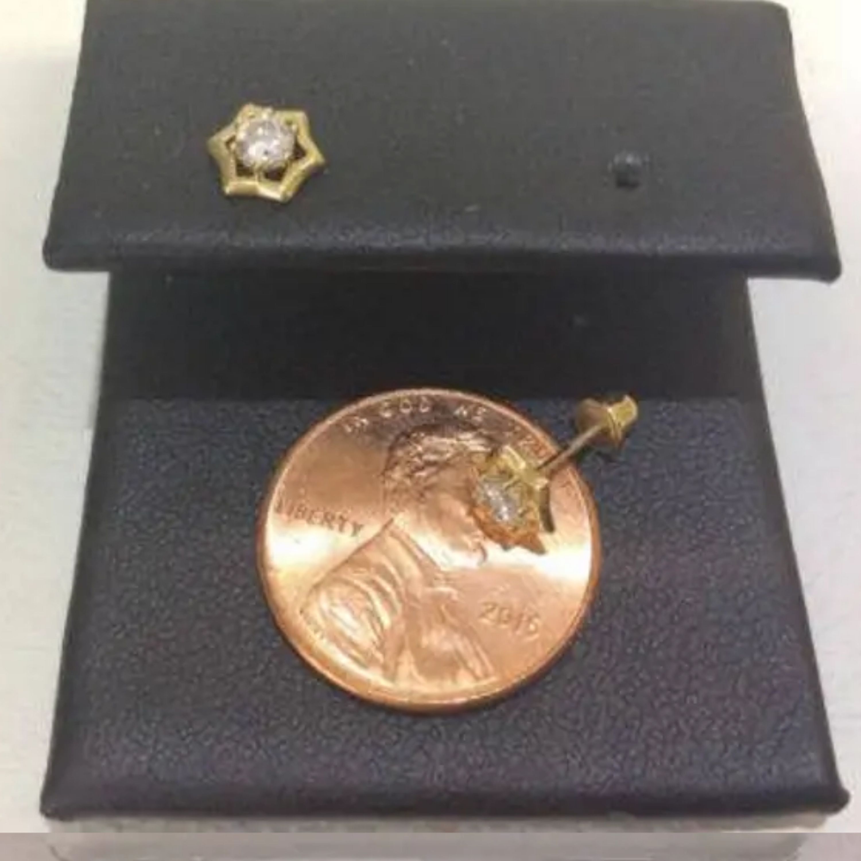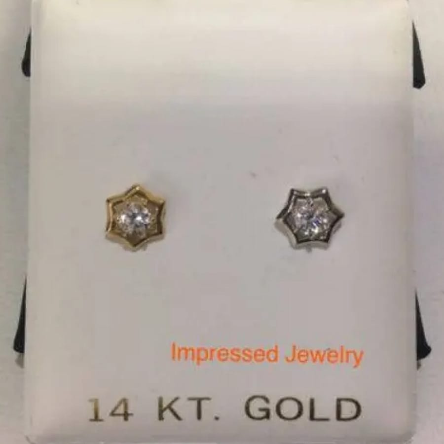 14k Yellow/White Real gold CZ Stud Octagon halo Screwback safe women men earrings