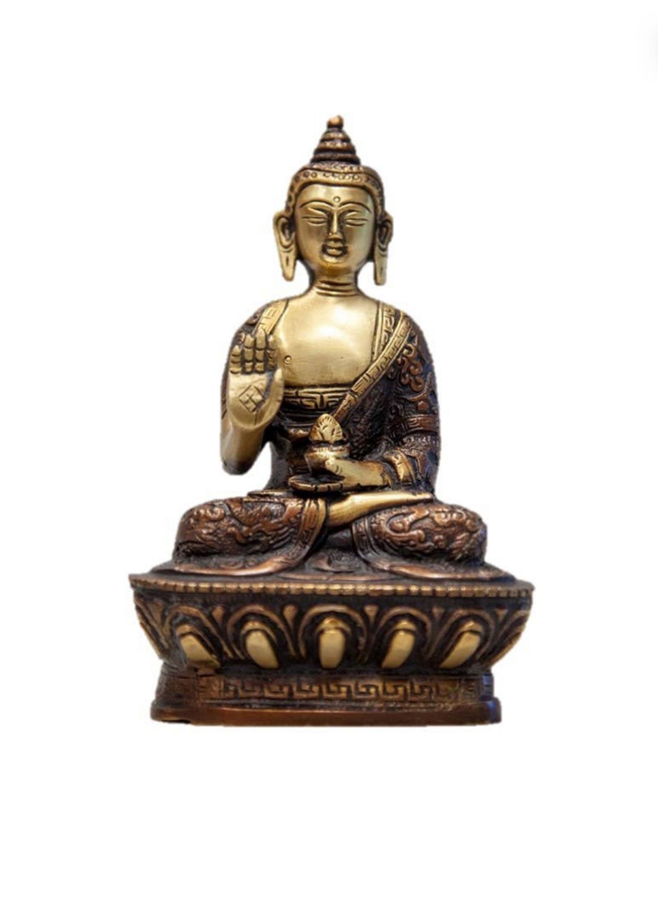 Each sculpture is a sturdy and timeless representation, hand-carved with devotion to Lord Buddha in brass. Please note that due to the handcrafted nature, some variations in color and pattern are to be expected, adding to its unique charm.
