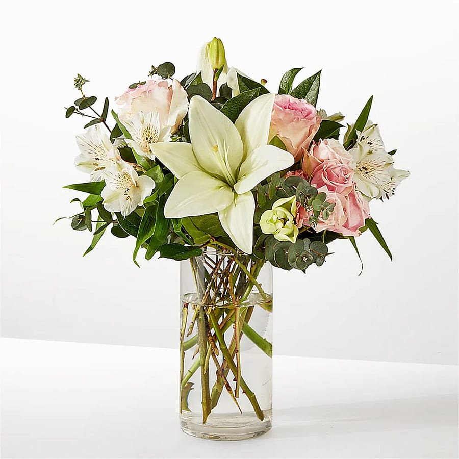 Soft pinks and white florals are a beautiful way to share thoughts of sympathy, anniversary wishes, a get well, or even a birthday treat.