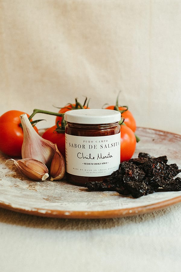 Fully ripened, smoked jalapeños give this salsa morita a unique medium hot, smoky flavor. This is my everyday salsa.