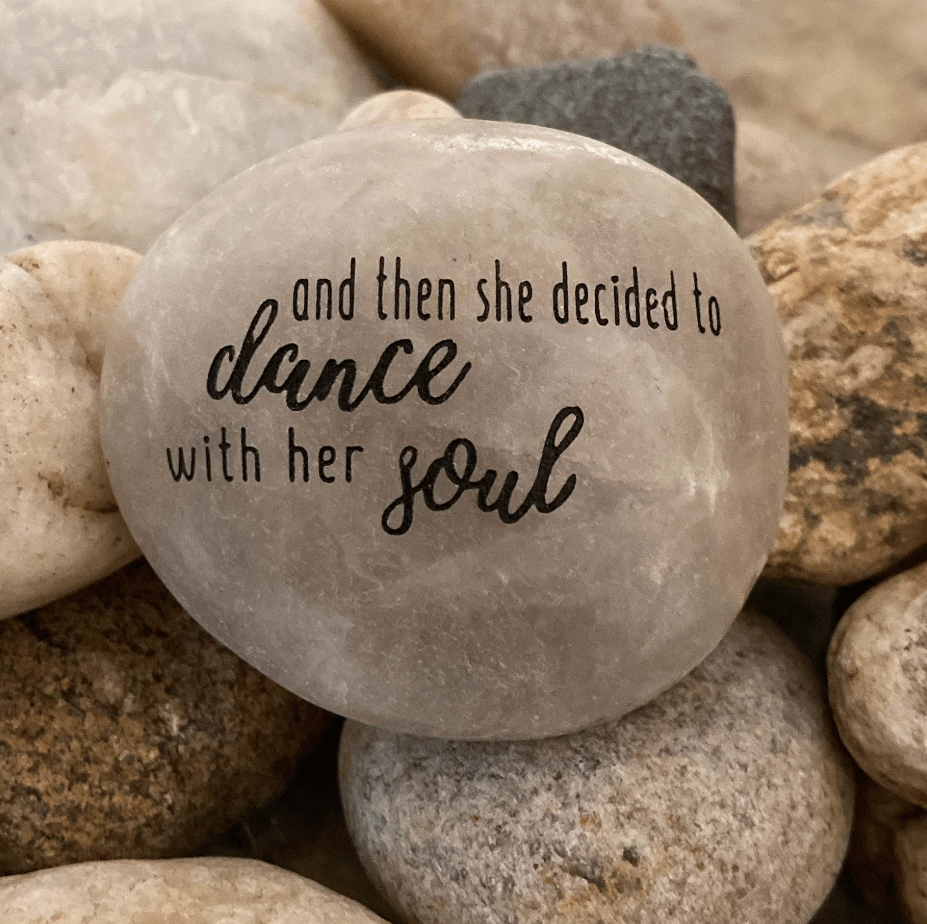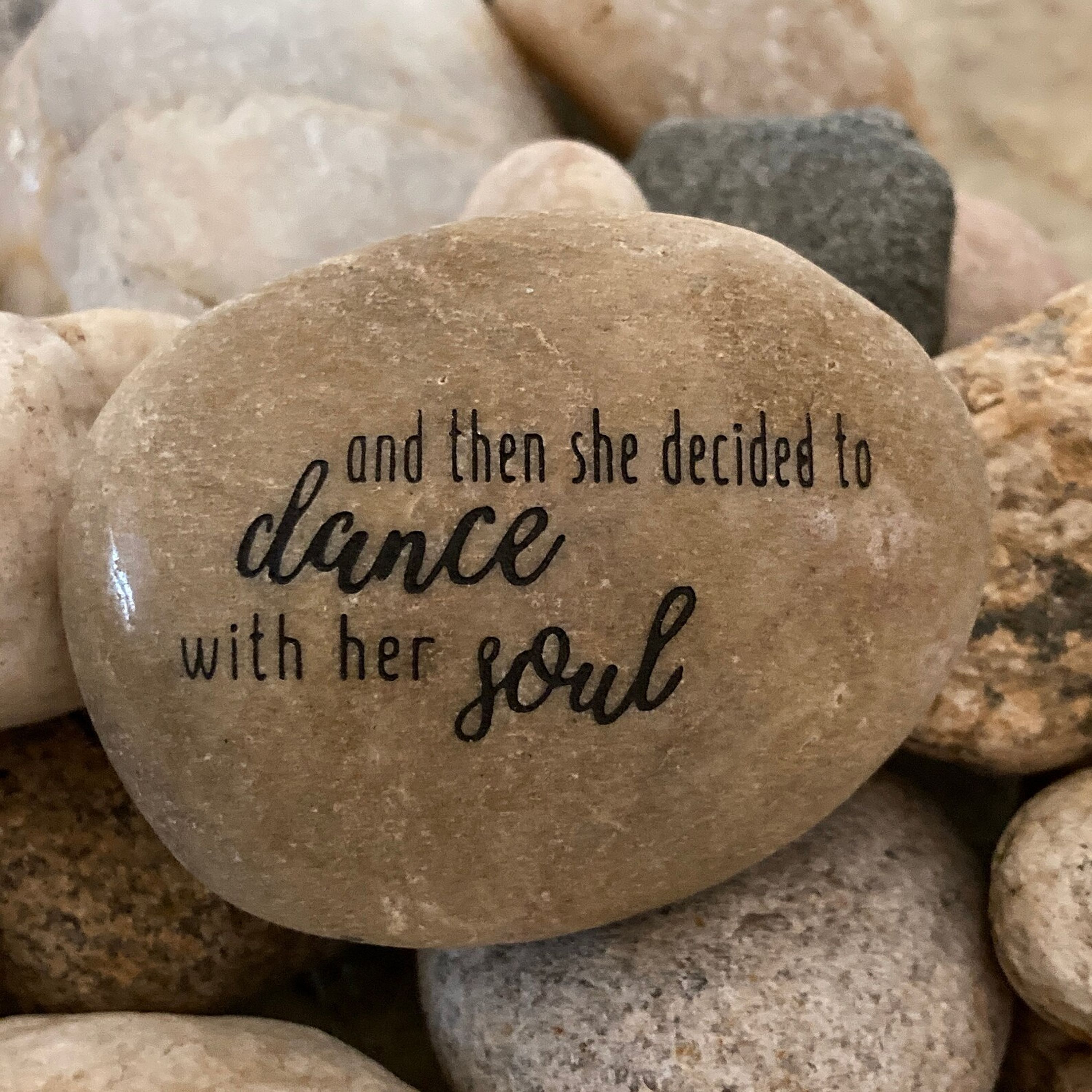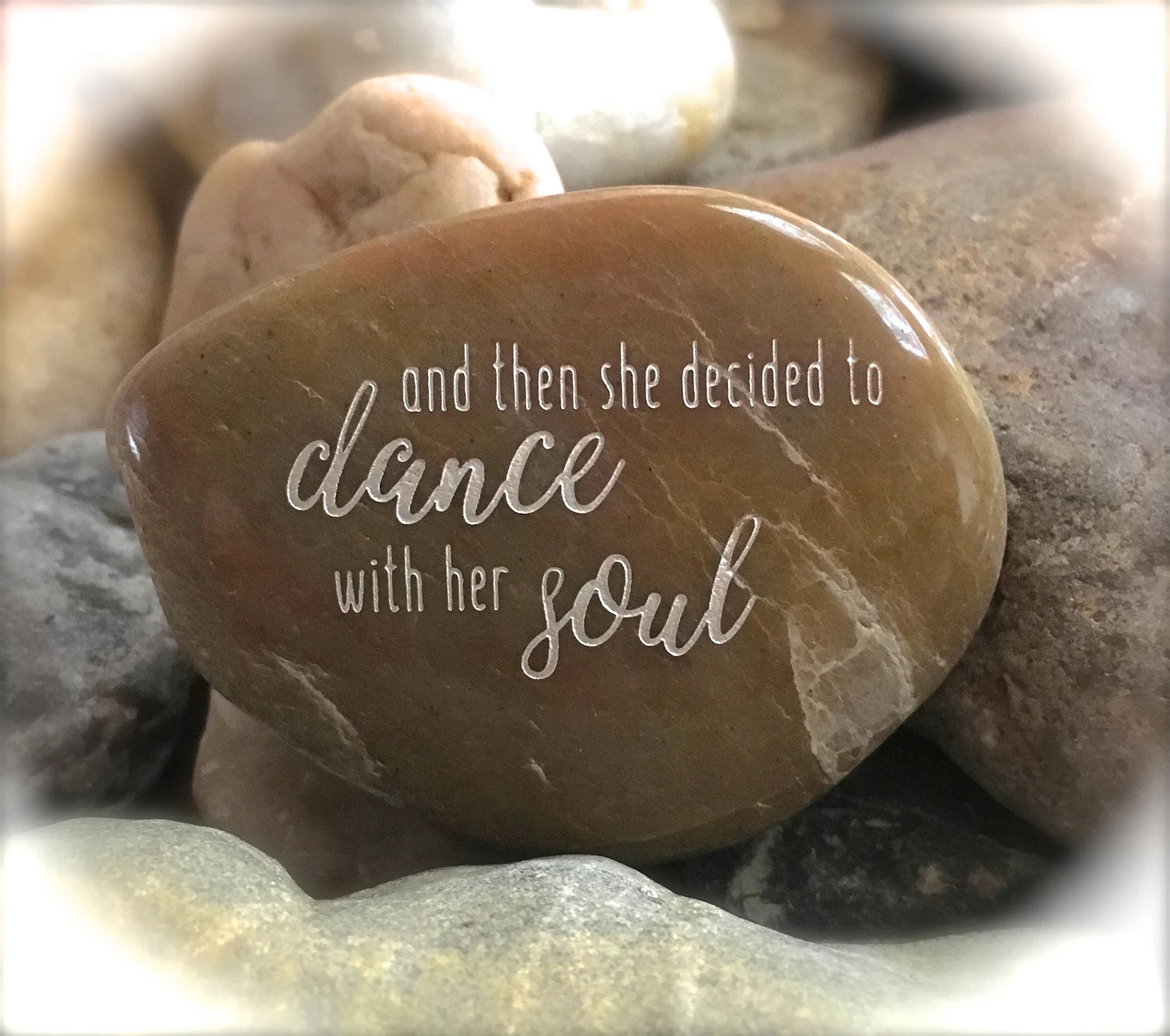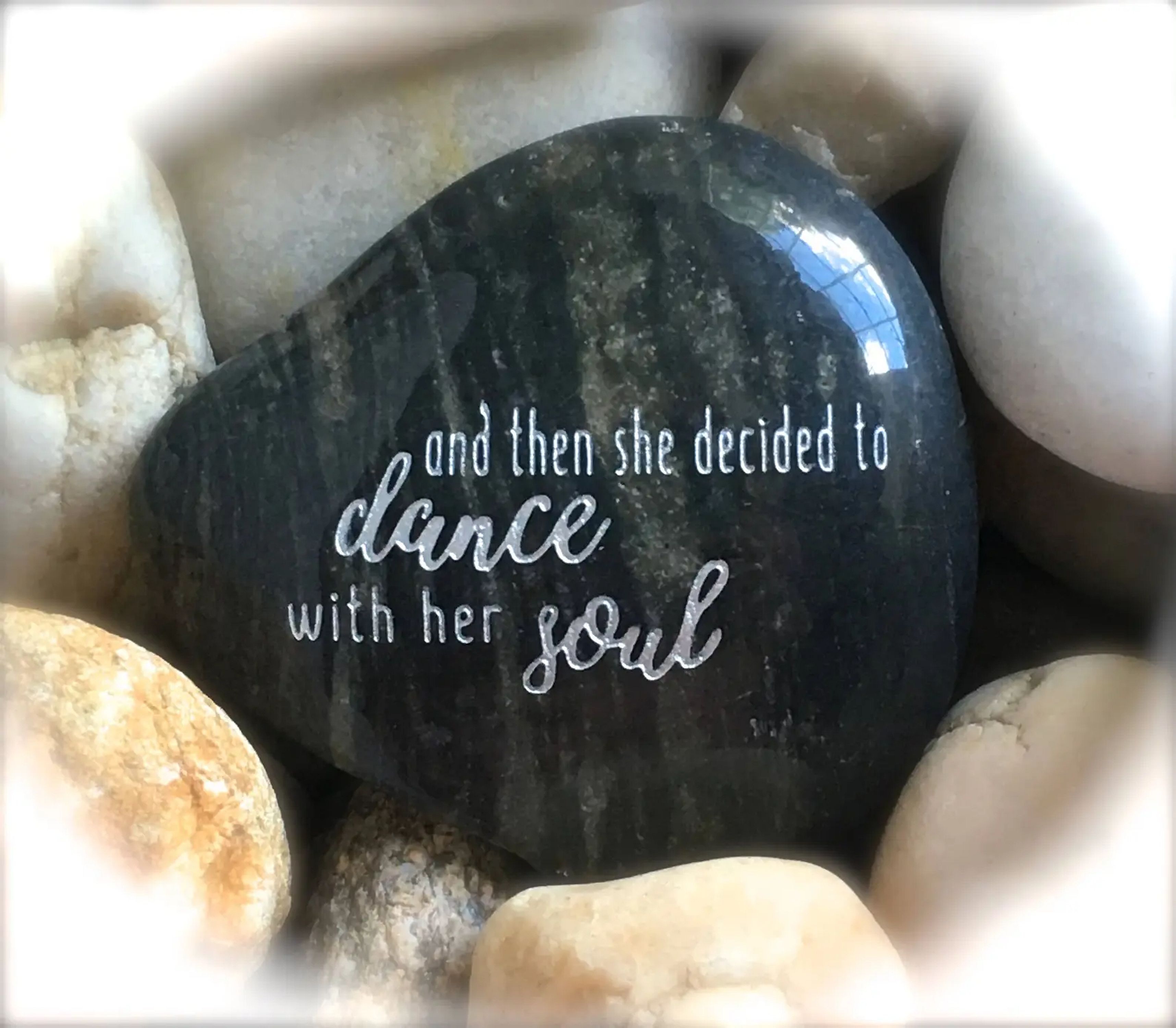 Great stocking stuffer! *Please note - this listing is for the exact engraved design you see in the photos - not the color of the stone (customized engraving is not available). Engraved messages are enhanced with either black or silver. If you have a specific request of color/tone, please let us know. Our polished river rocks have natural imperfections that are characteristic of all natural stone. The colors, shapes, and sizes of our stones (2.5" - 4.0") vary. While we do put careful attention into making sure each of our word stones is beautiful, they are not guaranteed to be the exact colors and shapes as pictured. We do not replace stones unless broken in shipment.