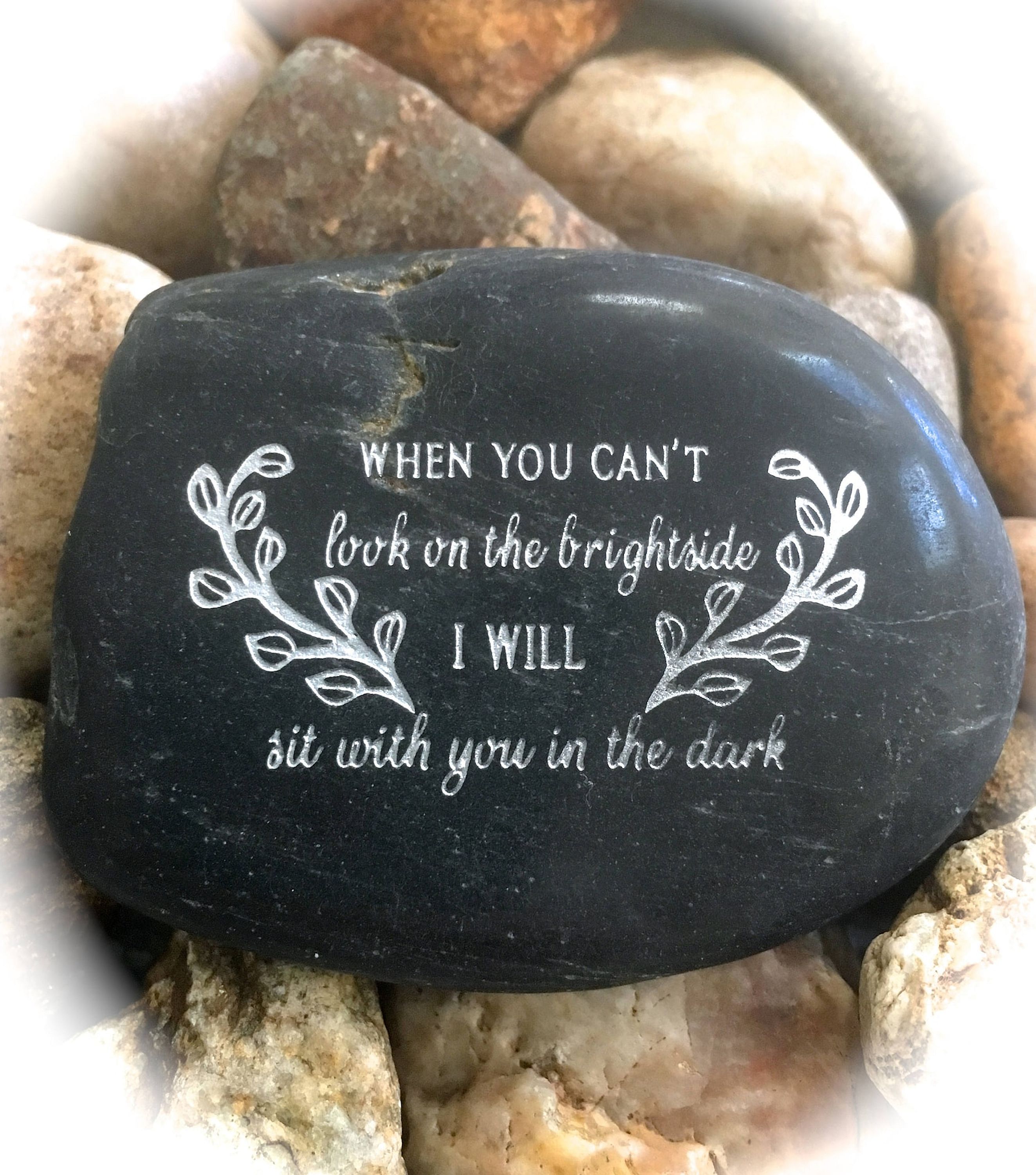 Great stocking stuffer! *Please note - this listing is for the exact engraved design you see in the photos - not the color of the stone (customized engraving is not available). Engraved messages are enhanced with either black or silver. If you have a specific request of color/tone, please let us know. Our polished river rocks have natural imperfections that are characteristic of all natural stone. The colors, shapes, and sizes of our stones (2.5" - 4.0") vary. While we do put careful attention into making sure each of our word stones is beautiful, they are not guaranteed to be the exact colors and shapes as pictured. We do not replace stones unless broken in shipment.