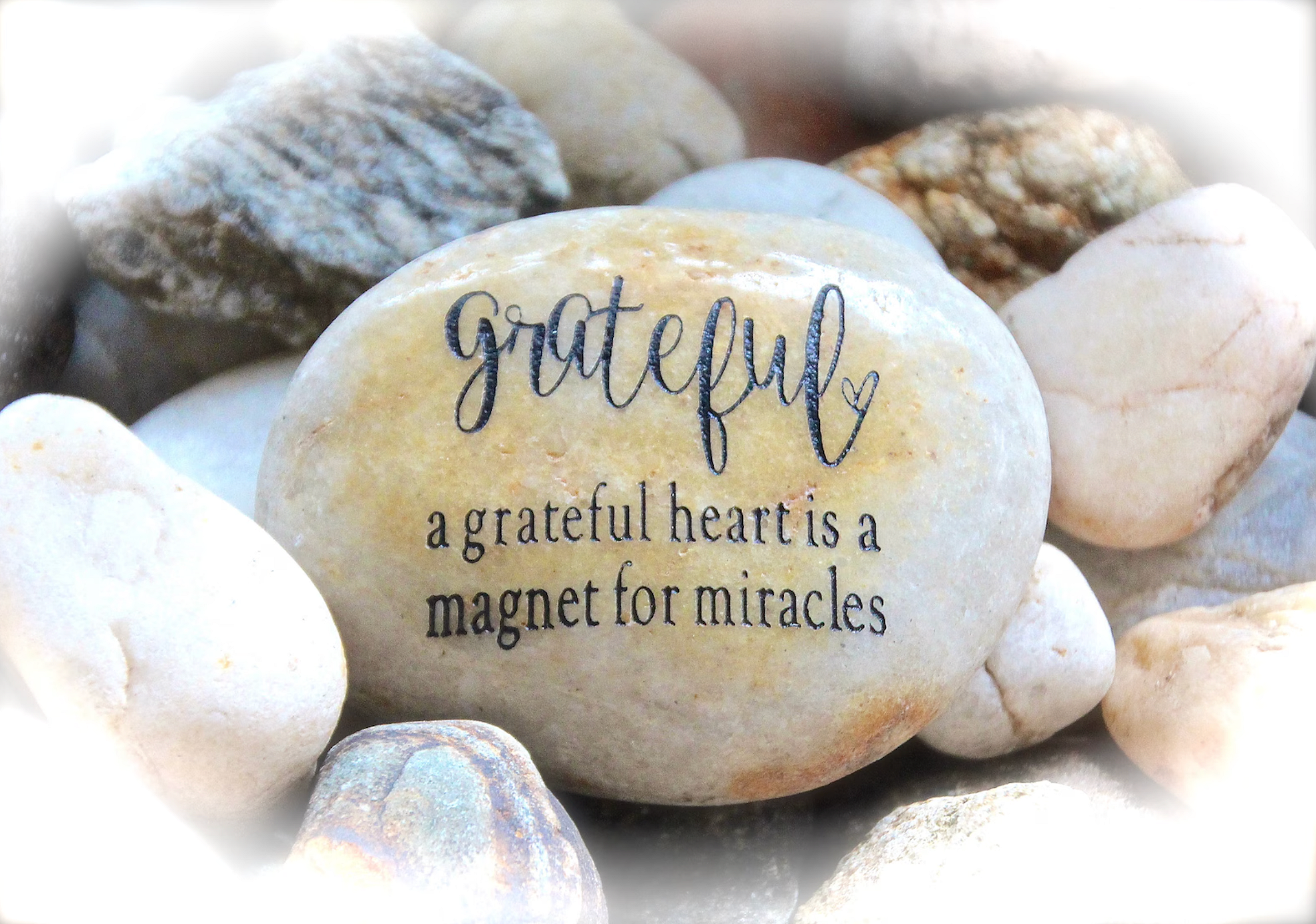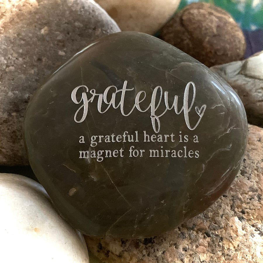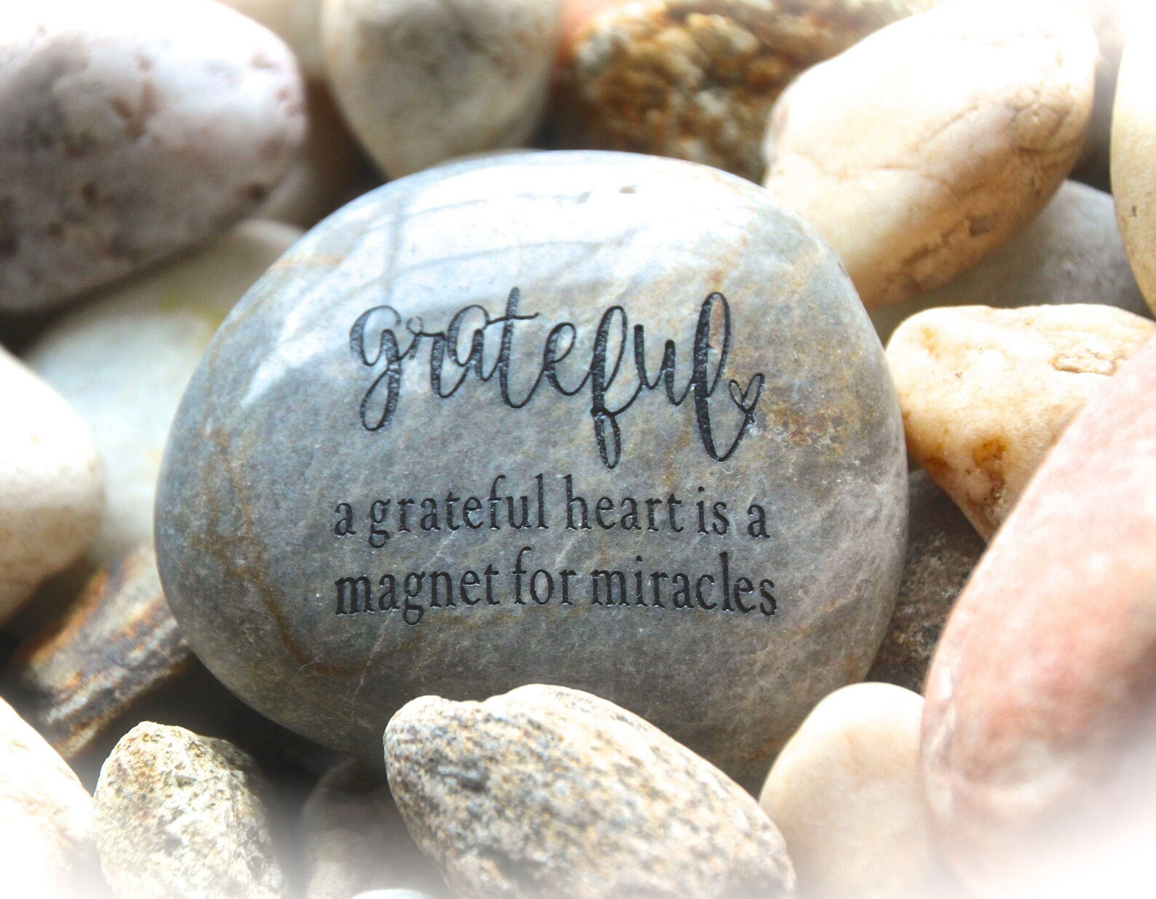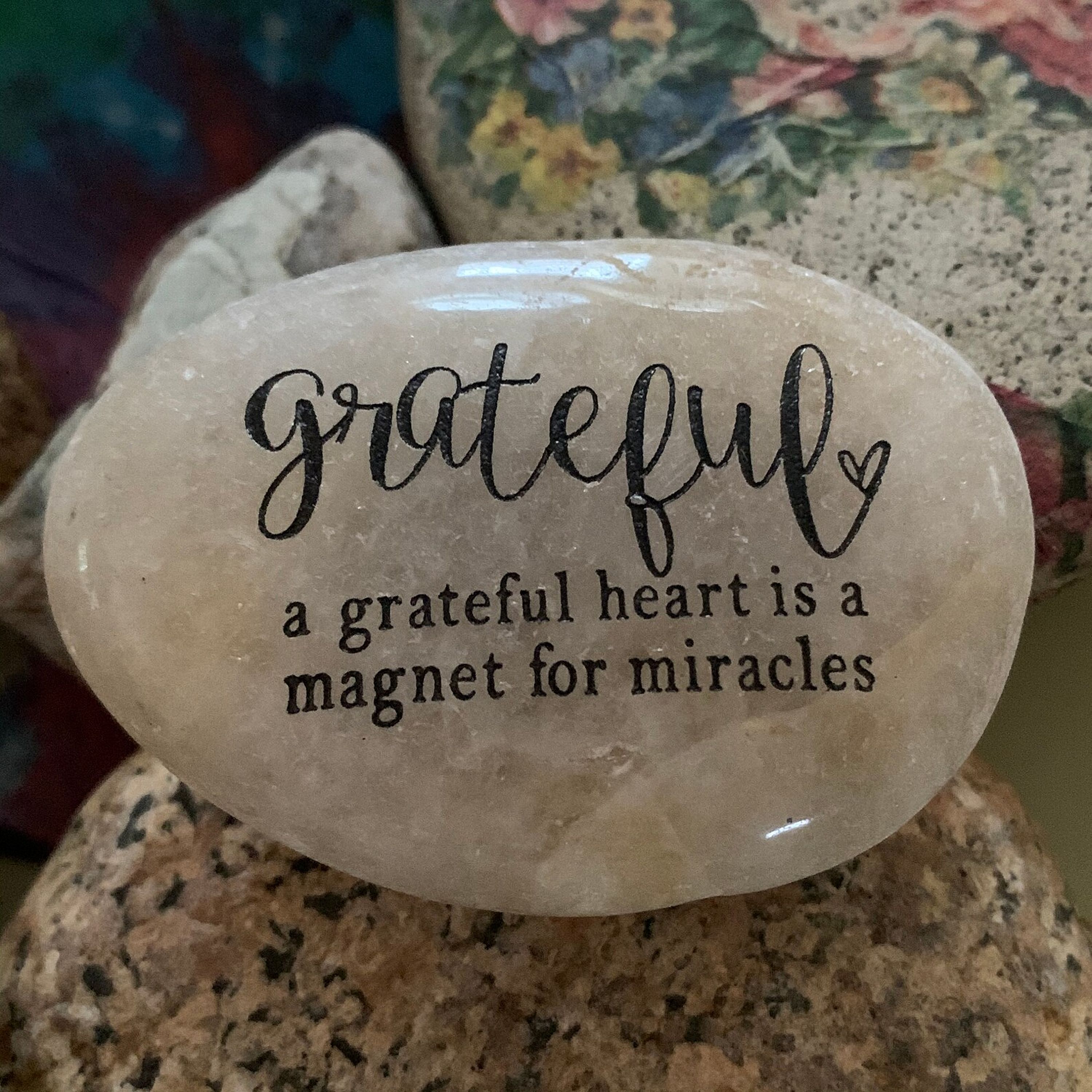 Makes a unique and thoughtful gift for anyone! Your positive vibes and loving energy will be remembered forever with our inspirational, engraved stone A Grateful Heart Is a Magnet For Miracles.