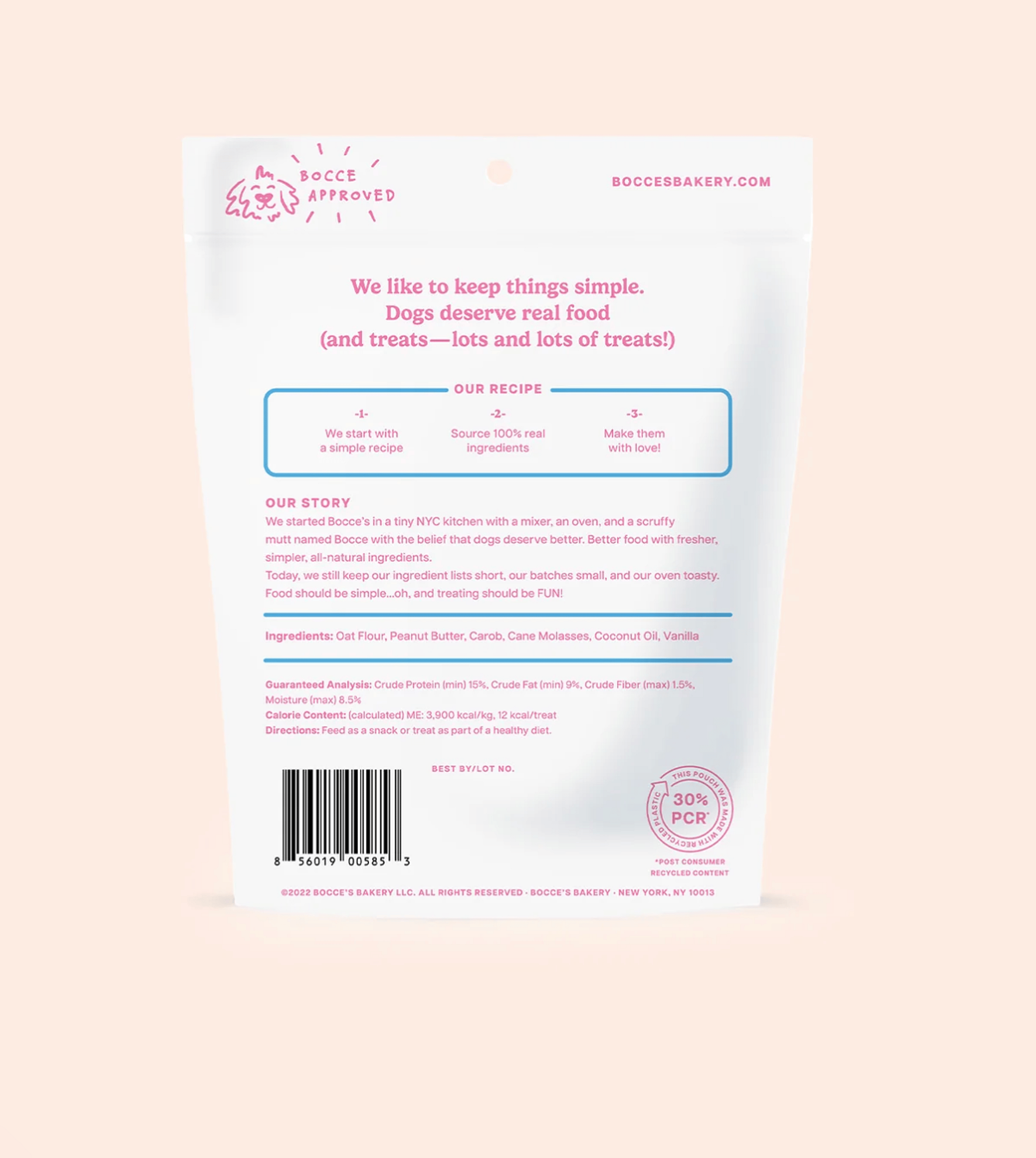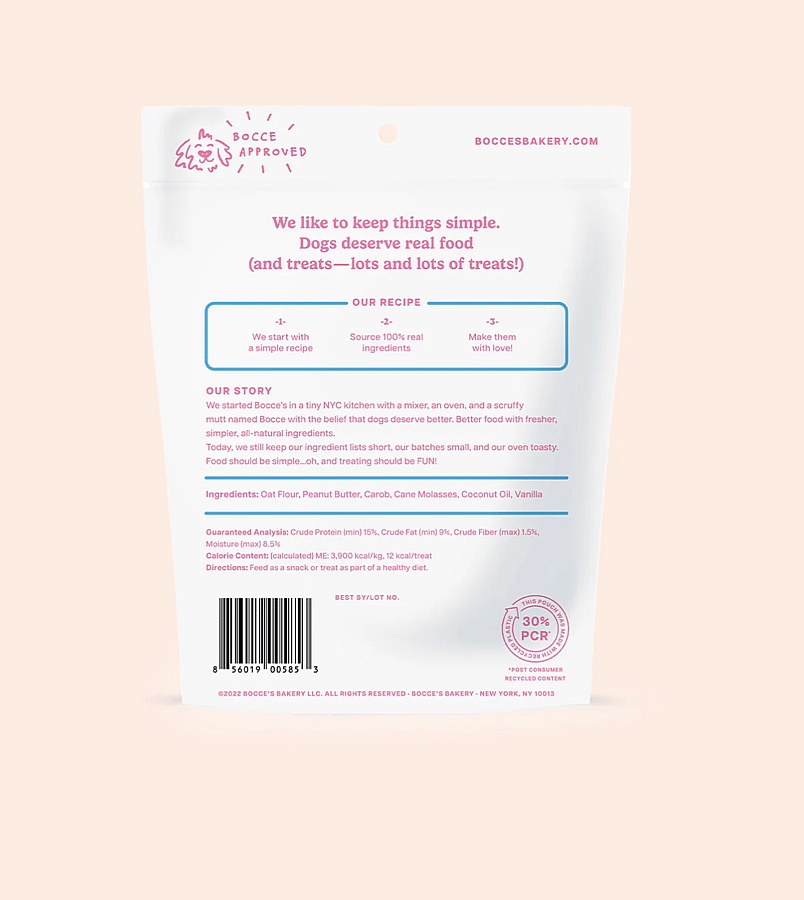 Bocce's baked up a birthday cake your pup can enjoy everyday. Treat your pup to this simply sweet biscuit and celebrate their birthday year-round. 5 oz. Wheat-Free 100% Real Ingredients Baked in the USA