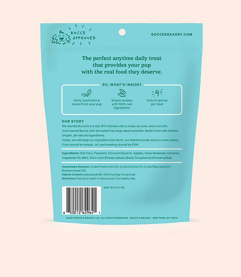 We are not the only ones in need of some daily TLC. Let's keep your pup feeling not a day over one, and extra fresh for those sloppy 'welcome home' smooches. Brushy Bites are baked with mint for fresh kissable breath to support daily dental wellness with a crisp apple flavor.
