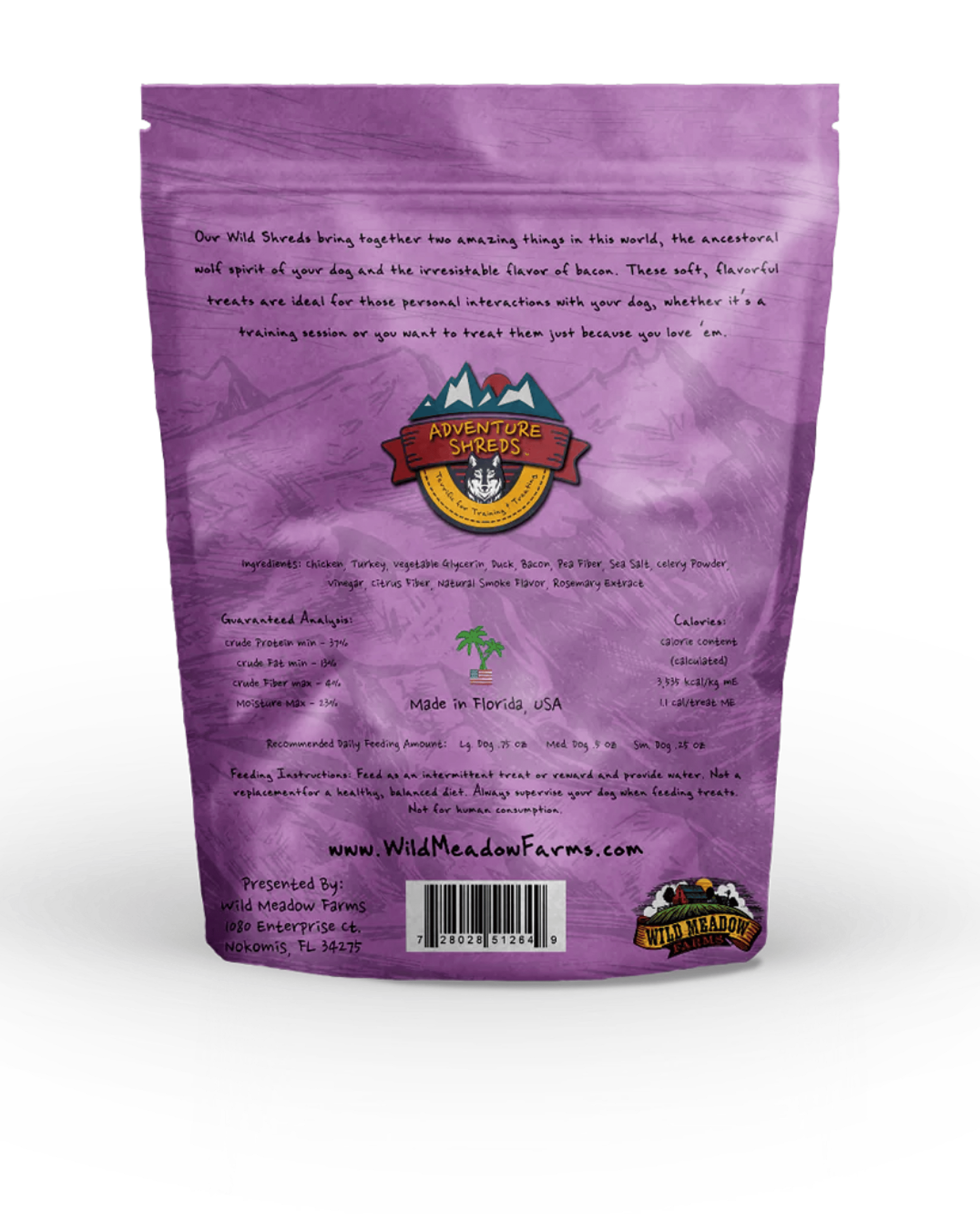 The Adventure Shreds have no sugar, corn, wheat, soy, or grains. They are a high quality treat that your dog deserves! Treat Their Inner Wolf.
