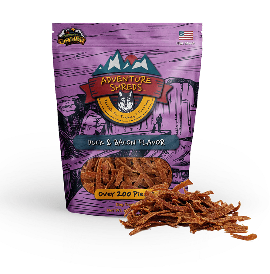 Our USA-made Duck Adventure Shreds combine the exciting taste of Duck and the enticing flavor of real bacon that every dog is sure to love. We craft the treats into a thin, ribbon shape that makes it easy to tear and portion. The bag is full with over 200 pieces or like we say "200 Reasons to Treat Your Dog." The shape and texture of these soft, flavorful treats make them ideal for those personal interactions with your dog, whether it's a training session or you want to treat them just because you love 'em.
