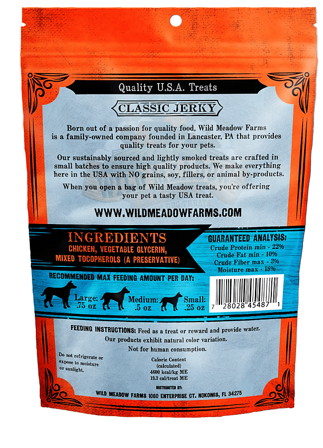 Our Wild Meadow Farms Classic Jerky Minis use the same recipes as our Classic Jerky Bites, but are crafted in a smaller size that is great to use for training, as a topper, or just treating smaller dogs. Give your dog these perfectly sized high quality, meaty training treats, and know that you are treating them right!