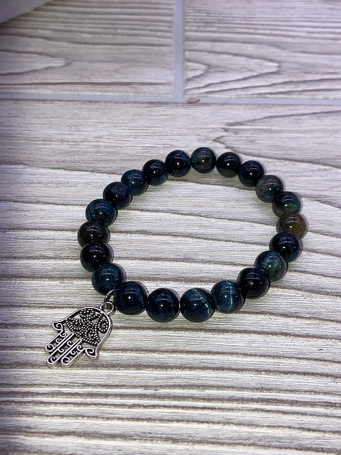 The Hamsa charm – a symbol of protection used in many cultures. Provides defense from the evil eye. It is also know as The Hand of Fatima, and The Hand of The Goddess.