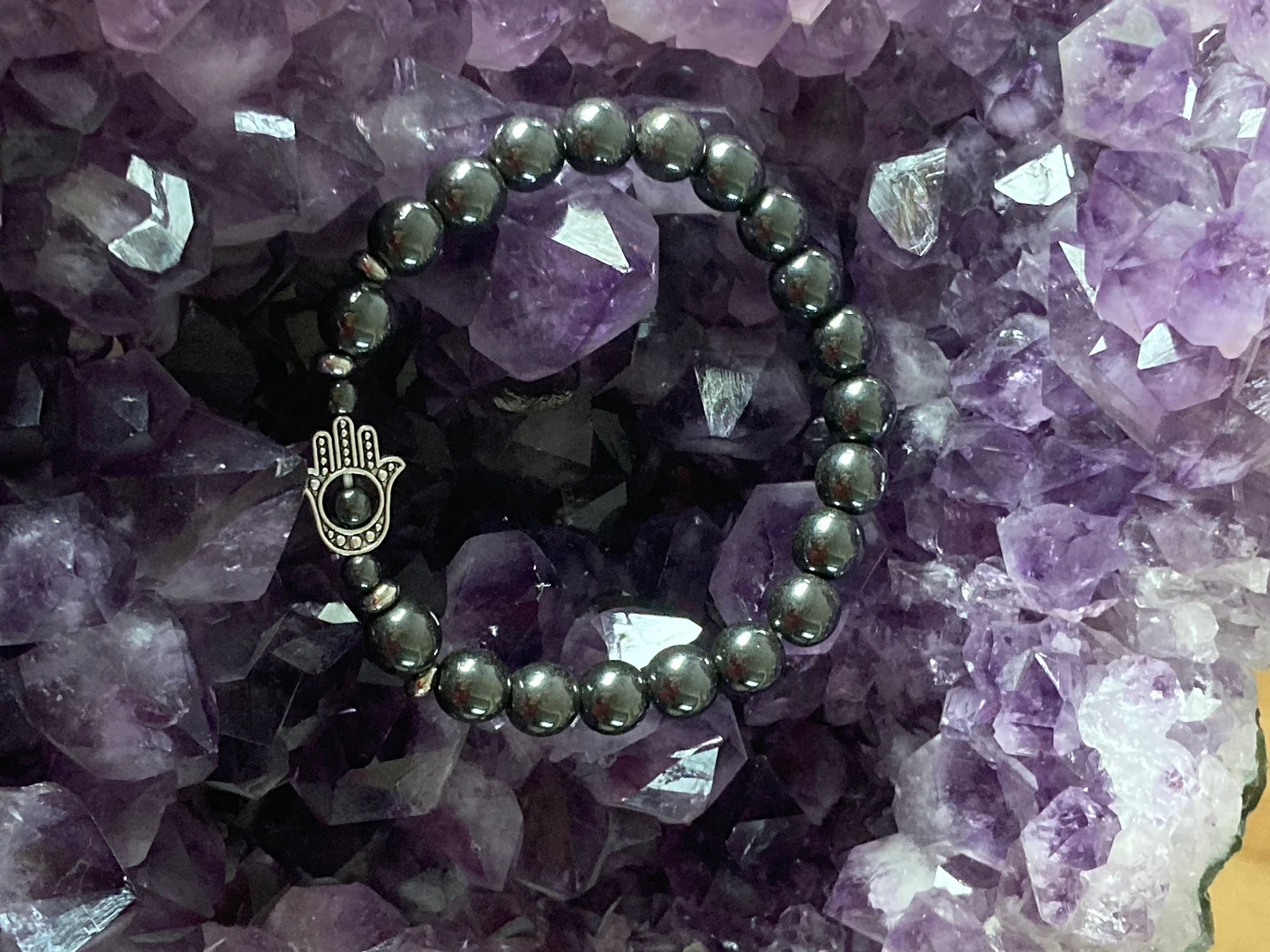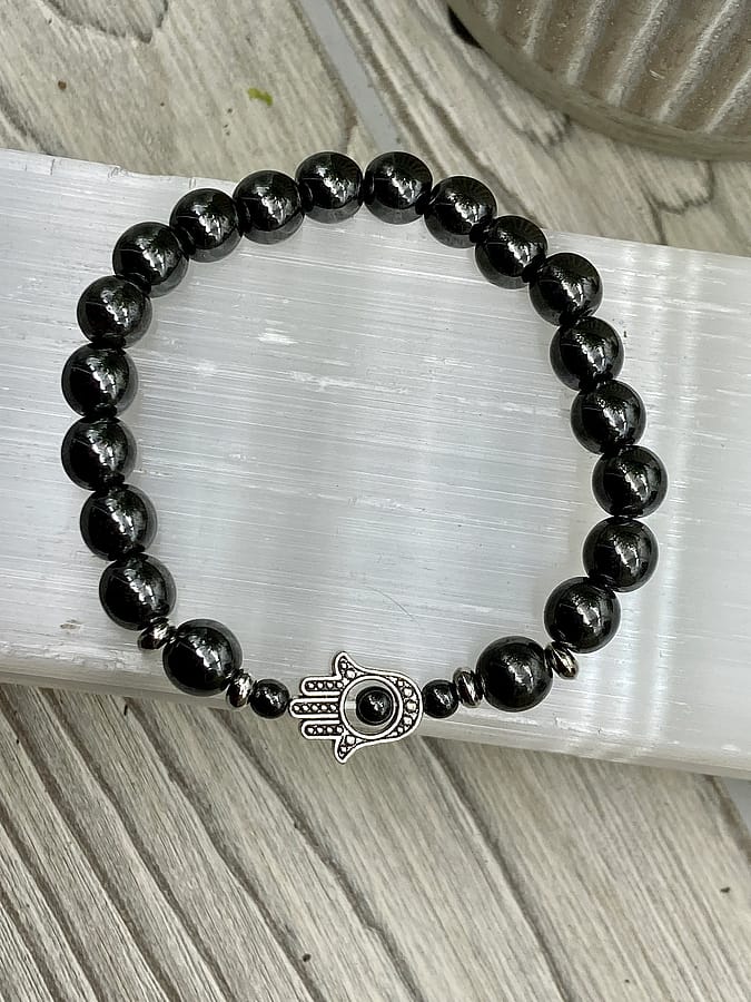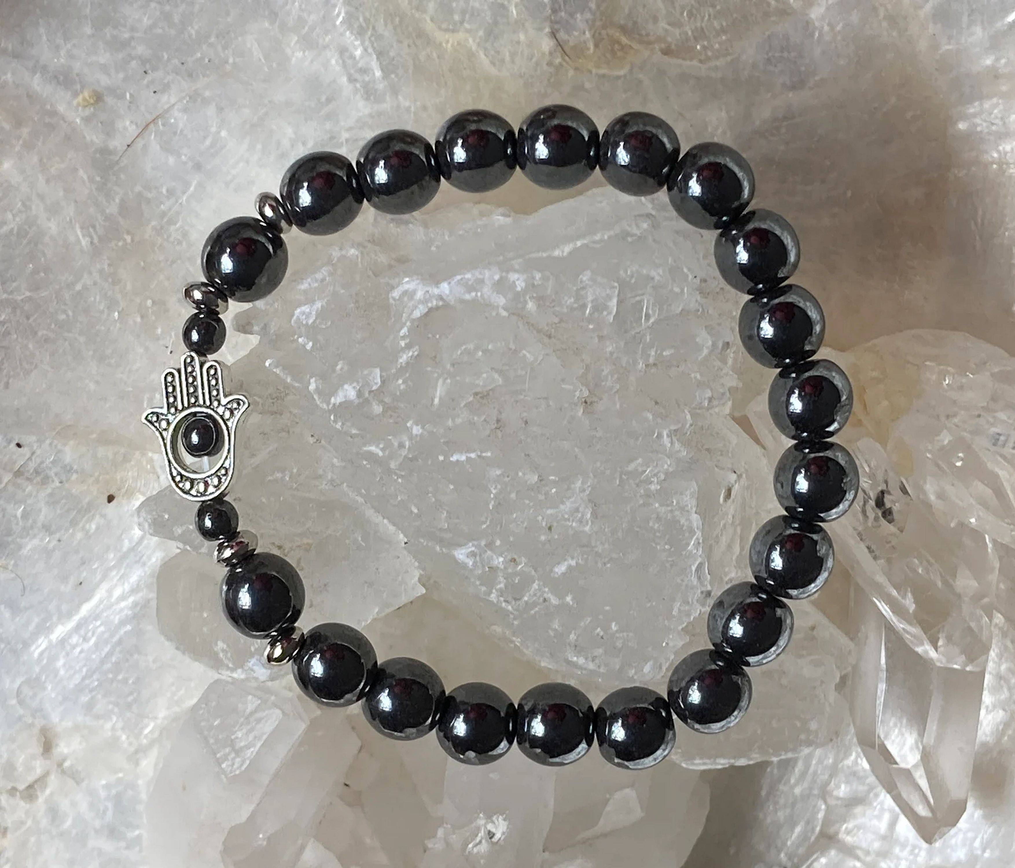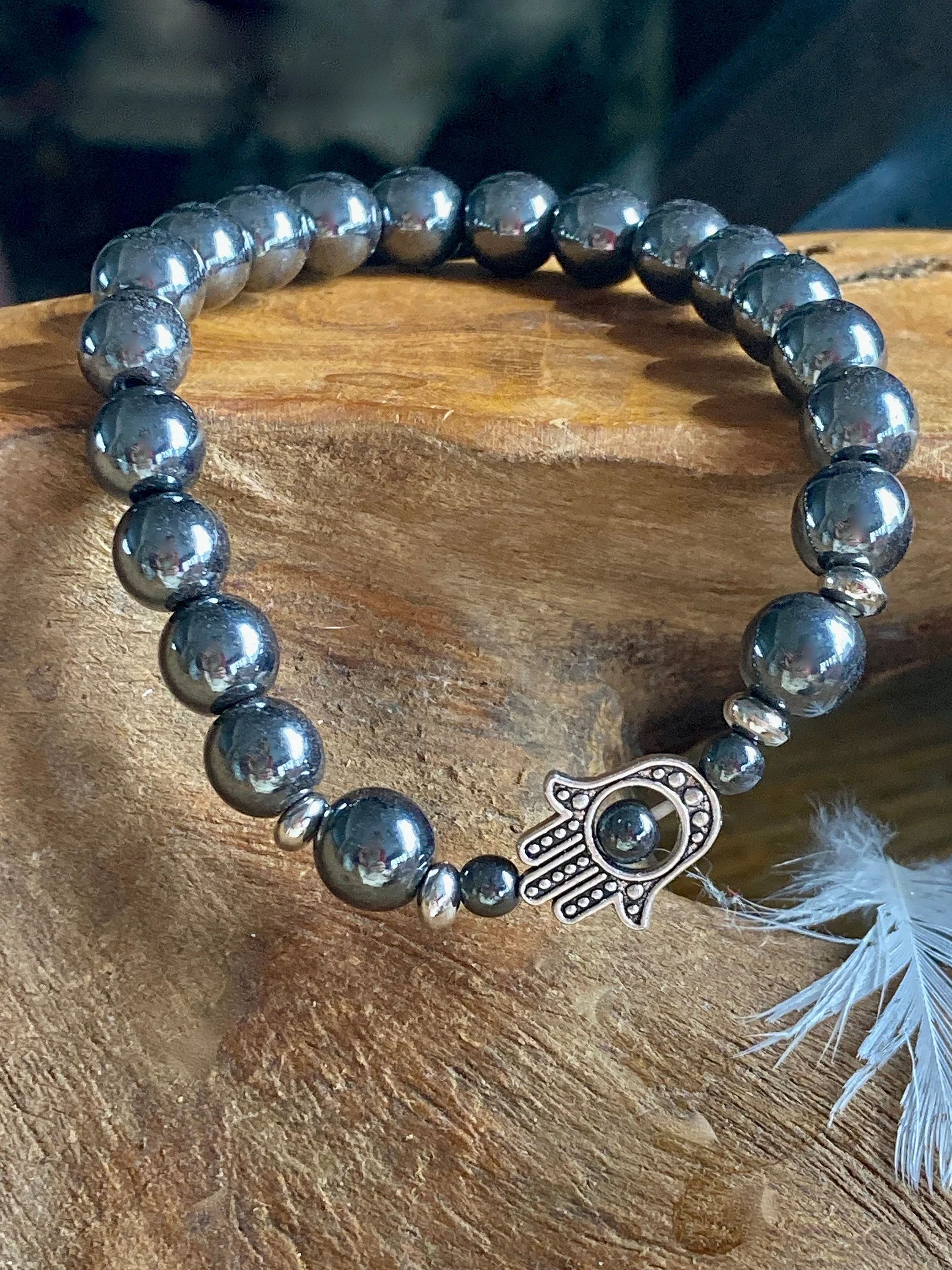 Great stocking stuffer! For Mother's Day – Hematite | Stone of Balance | Silver Hamsa