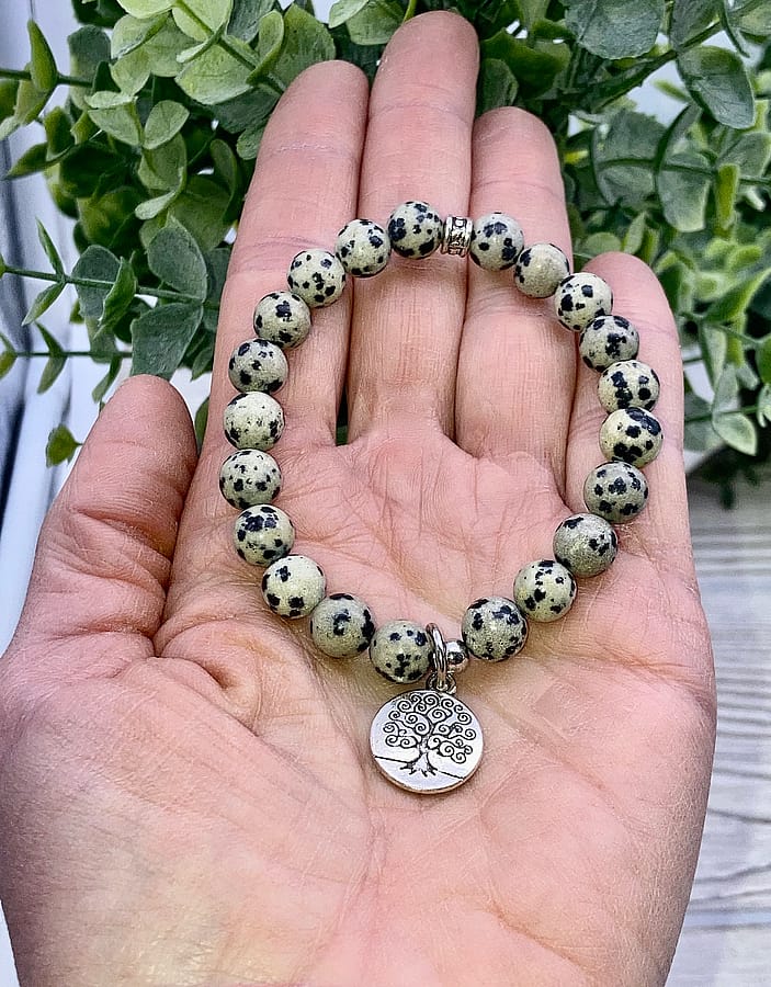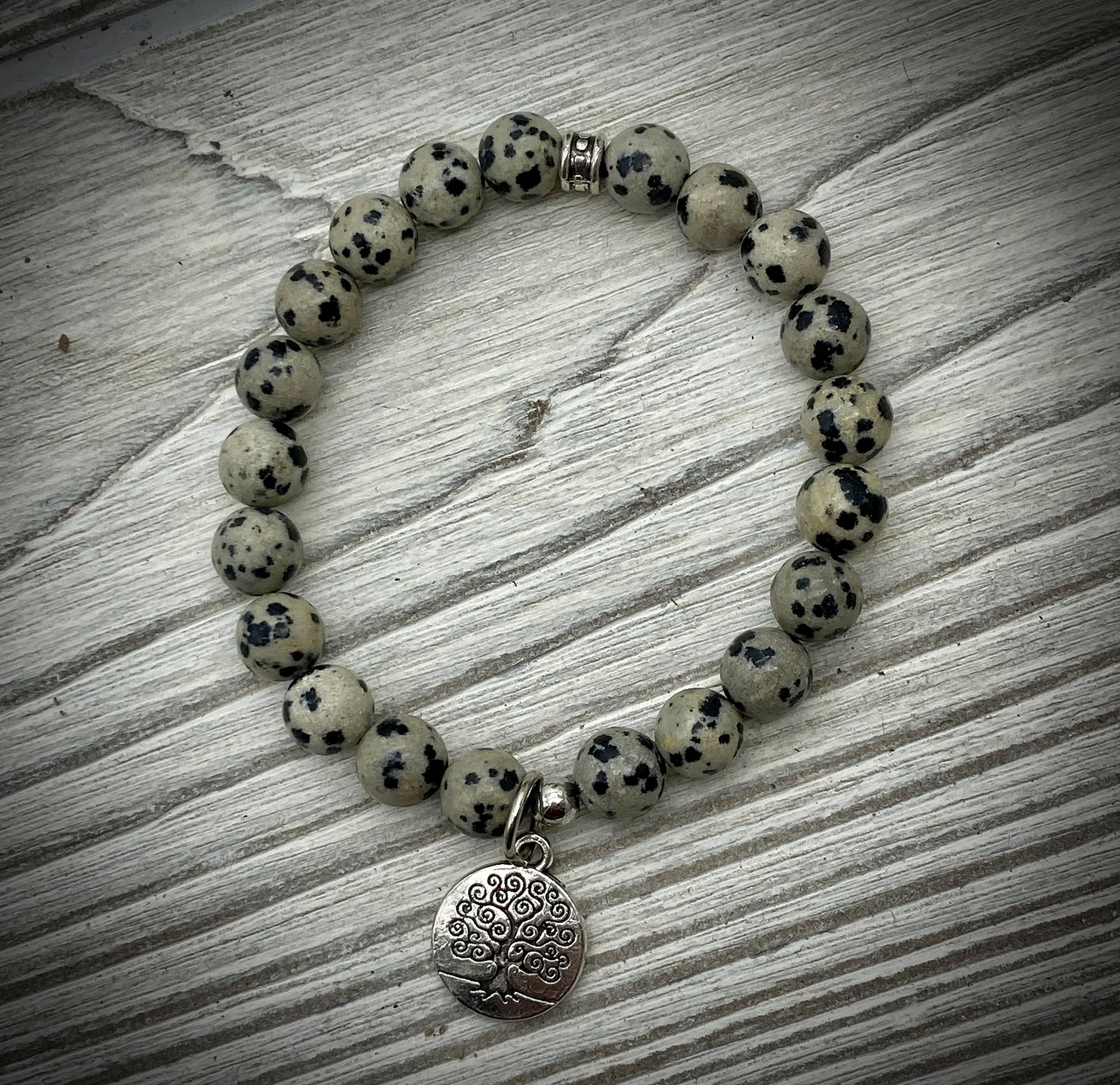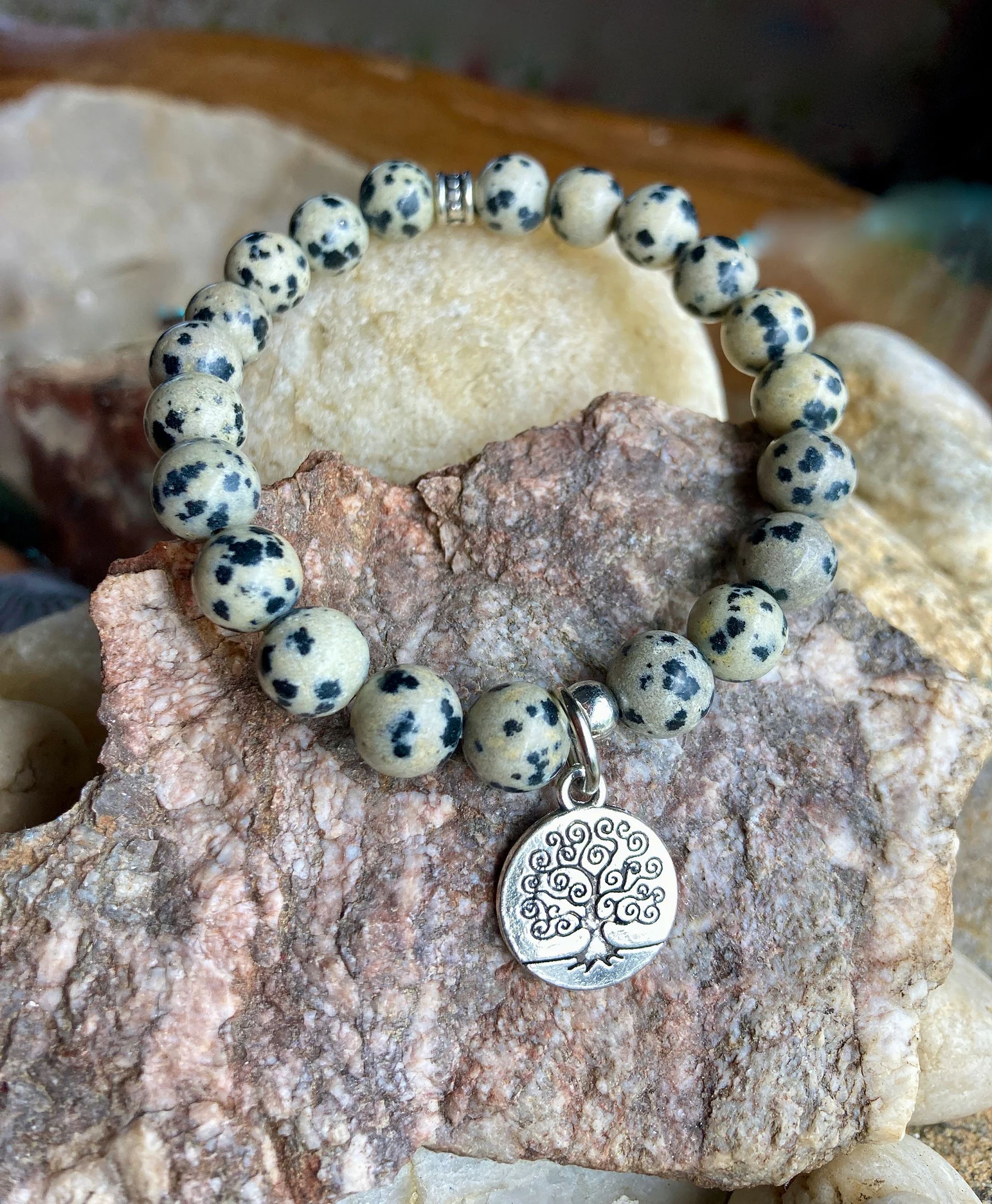 Great stocking stuffer! For Mother's Day – Dalmatian Jasper | The Stone of Joy | with Silver Tree of Life