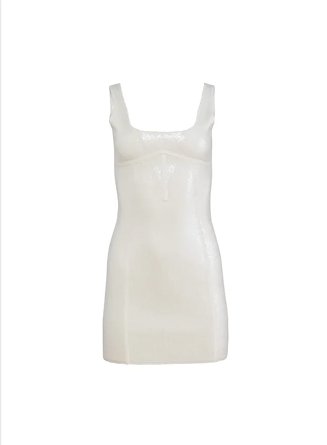 Be the life of every party in our Sequin Knit Bodycon Dress. Features flattering square neckline with extra support at top cups and back for lift and smoothing, so no bra is needed. Corset effect princess seams give shape and flatter your figure. Pair with heels and your favorite Essentials panty for a look that goes perfectly from happy hour to after hours.