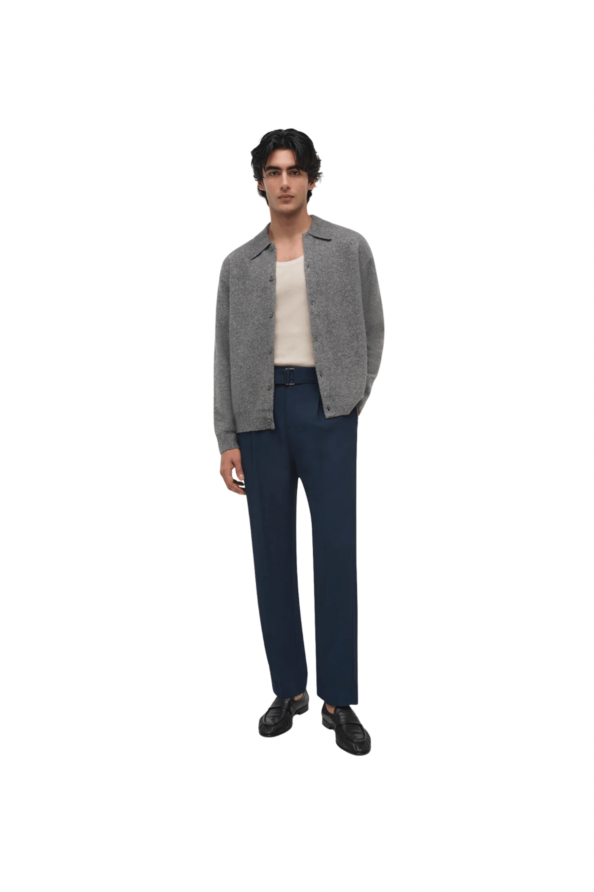 Crafted from refined utility fabric, this jacket balances relaxed ease with structured form. The pointed collar, zip-front closure, and functional pockets give it a modern, understated profile. Color: Ghost Grey