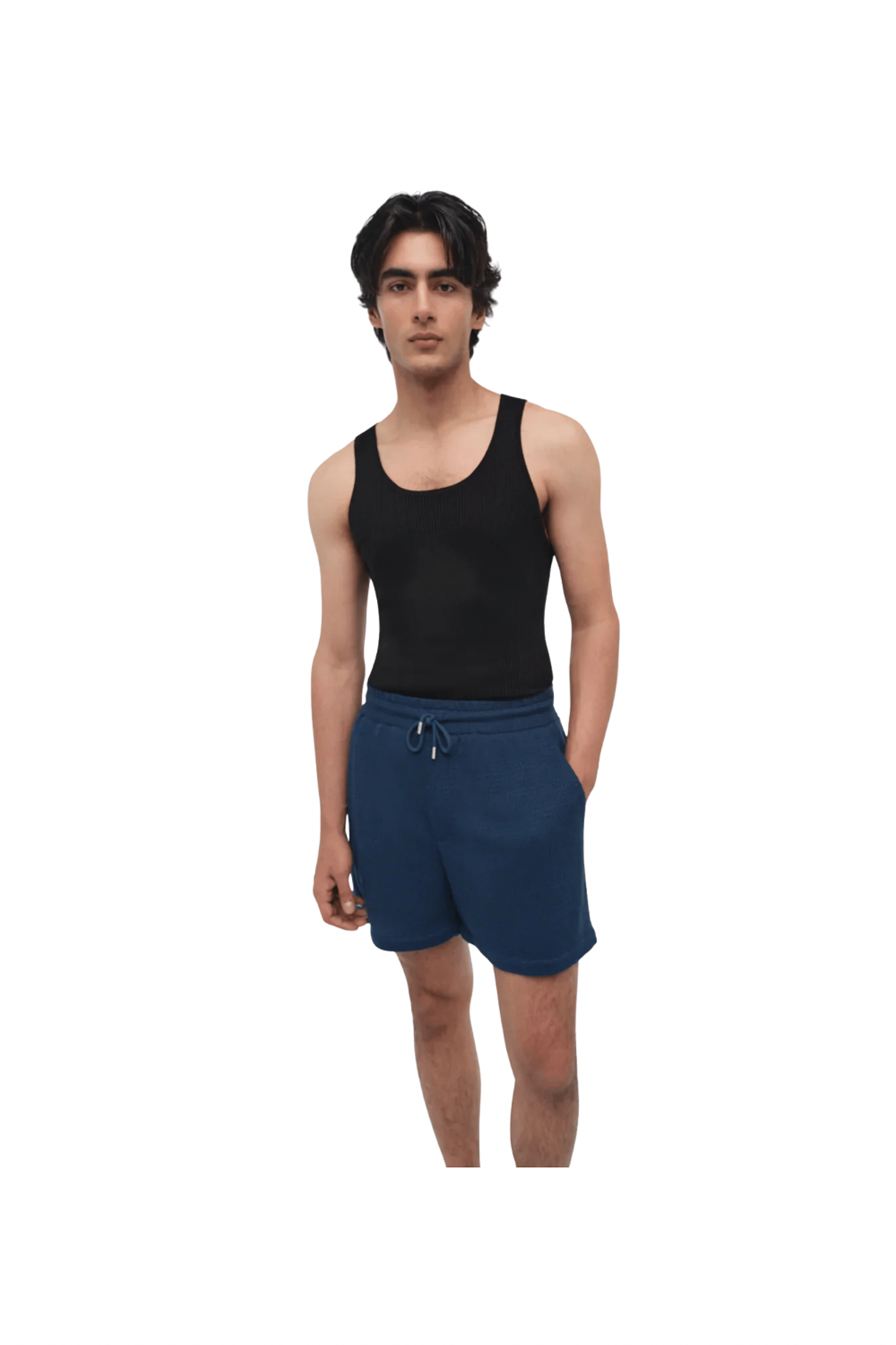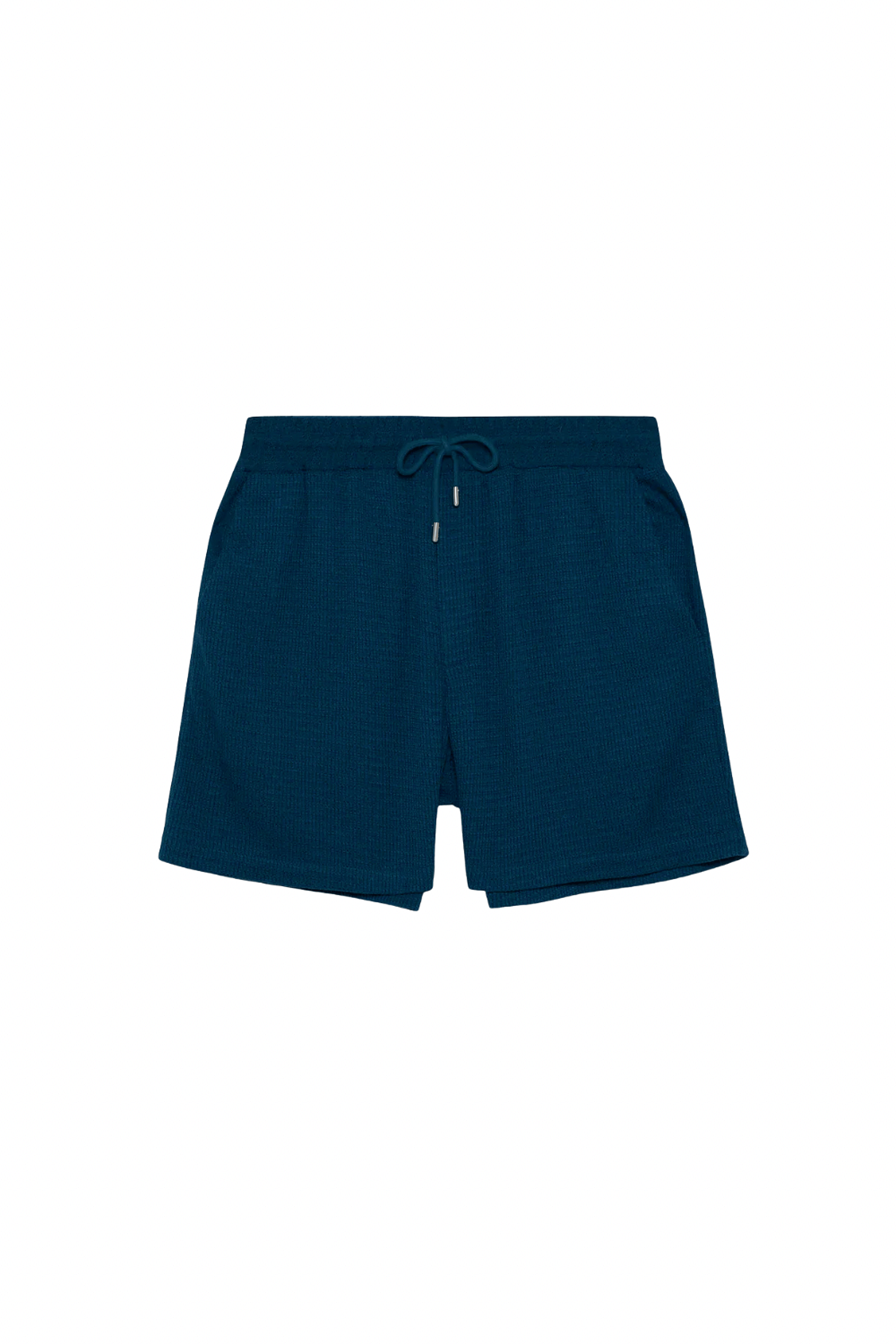 Rendered in a soft wool-silk blend with a structured waffle weave, these shorts balance ease of wear with refined construction. A streamlined silhouette and understated texture make them a versatile wardrobe staple Color: Midnight