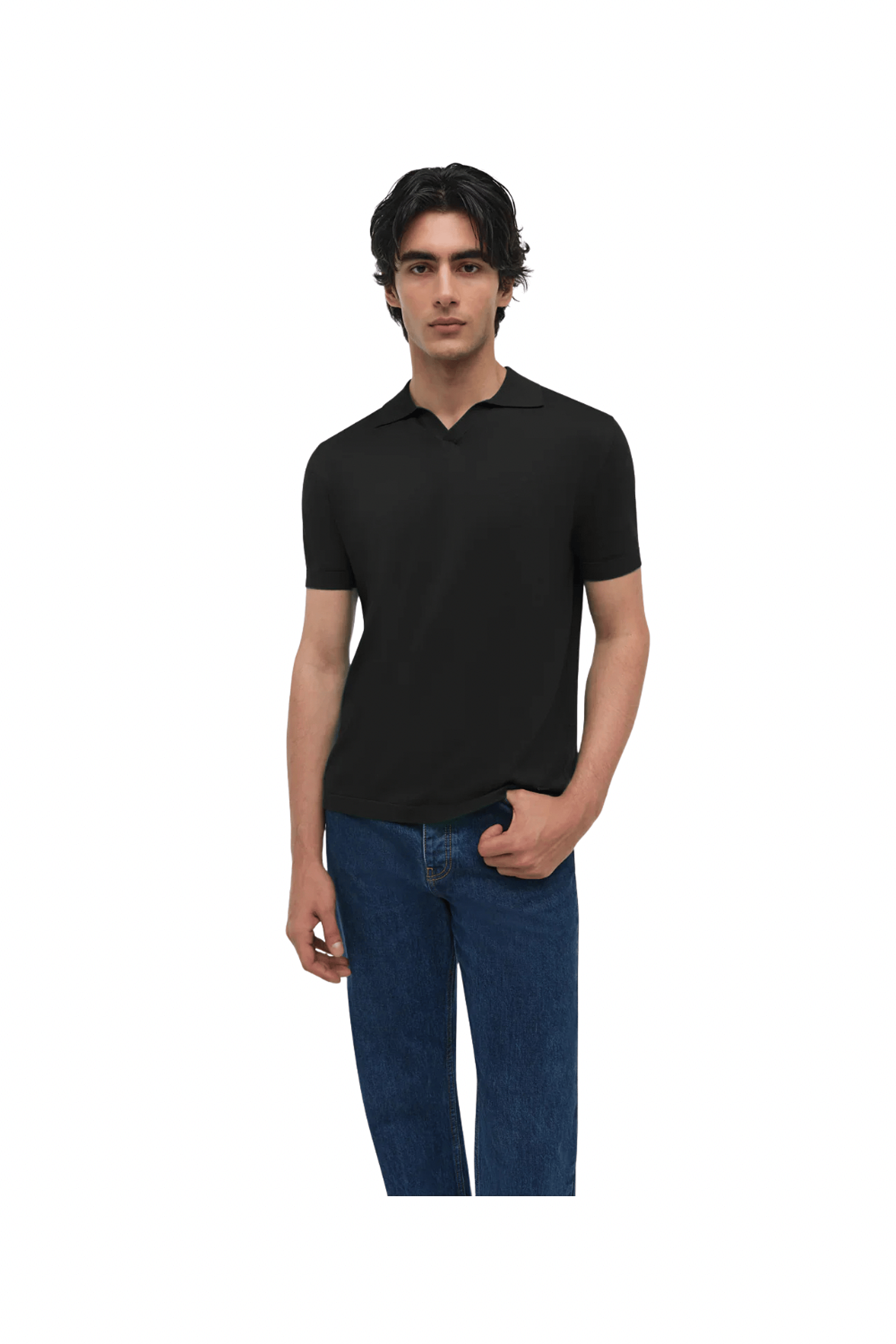 Knitted for a refined, close-to-body fit, this short-sleeve polo delivers a modern interpretation of a timeless staple. The smooth hand enhances its simplicity, while the classic collar adds an effortless, off-duty sophistication. Lightweight yet polished, it pairs seamlessly with tailored trousers or denim, making it a versatile essential for understated, everyday ease.