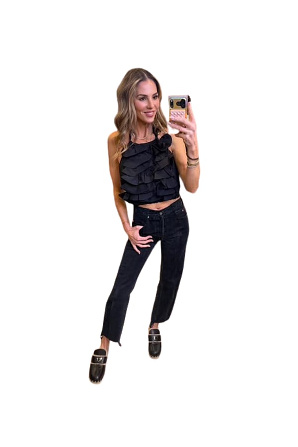 Designed with a mid-rise waist and relaxed straight leg cropped with a unique step hem at 29 inch inseam in the front and 31 inch inseam in the back