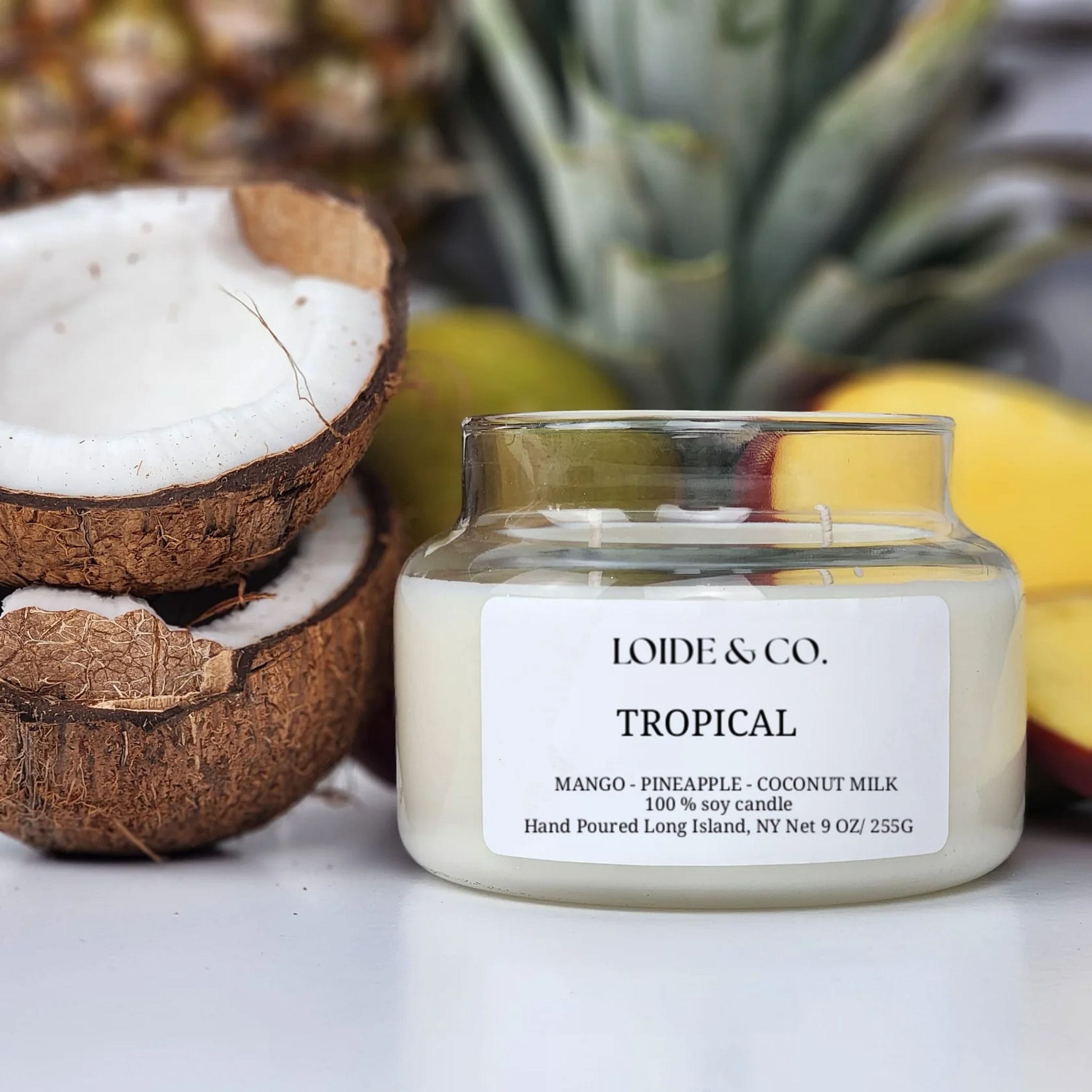 A dream modern tropical fusion of fresh mango and creamy coconut milk. Pineapple and orange top notes meld with ripe mango and a hint of peach. Coconut milk and sugar base notes round out this lush, luxurious fruit medley. This Tropical scent brings a burst of summer to any room.