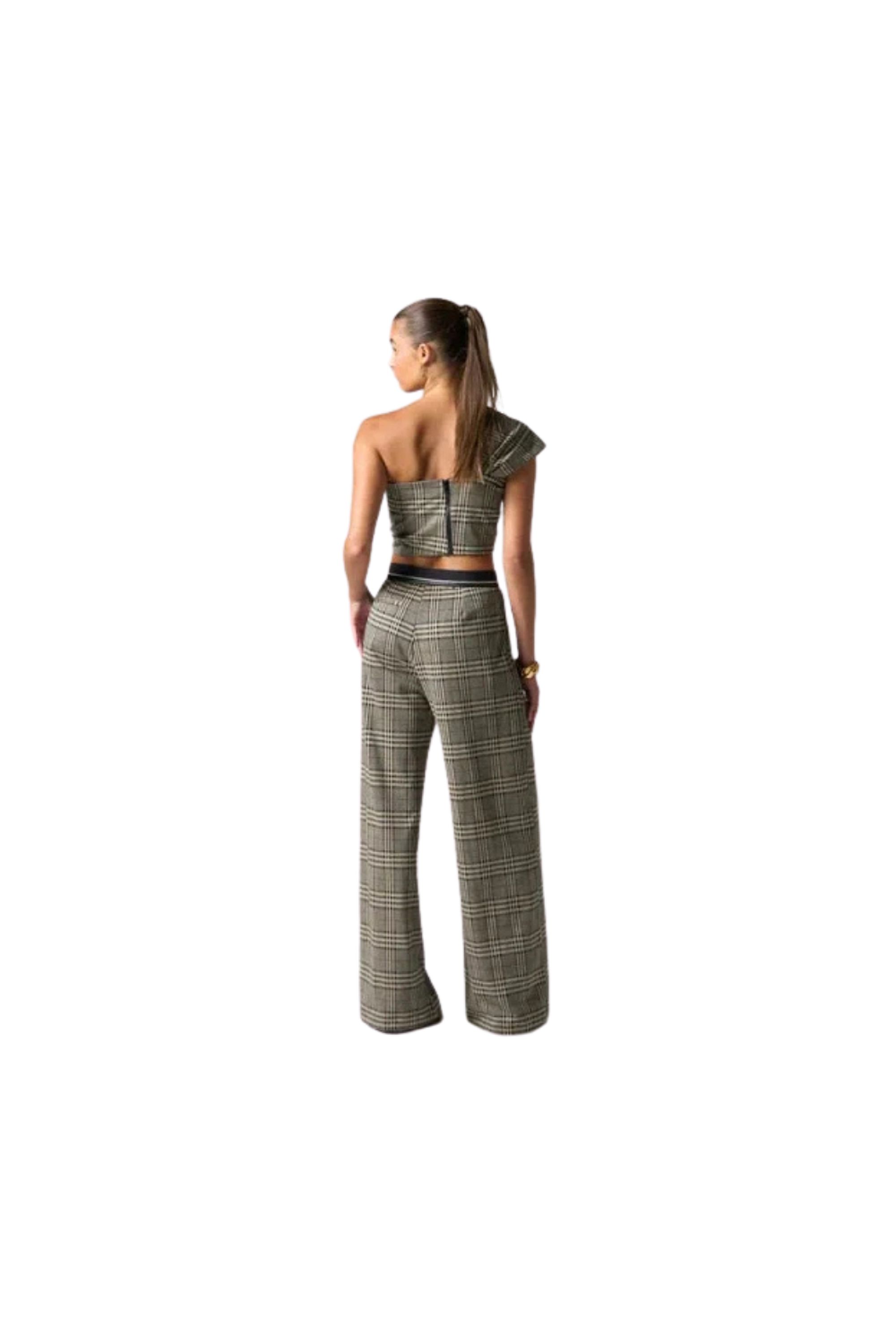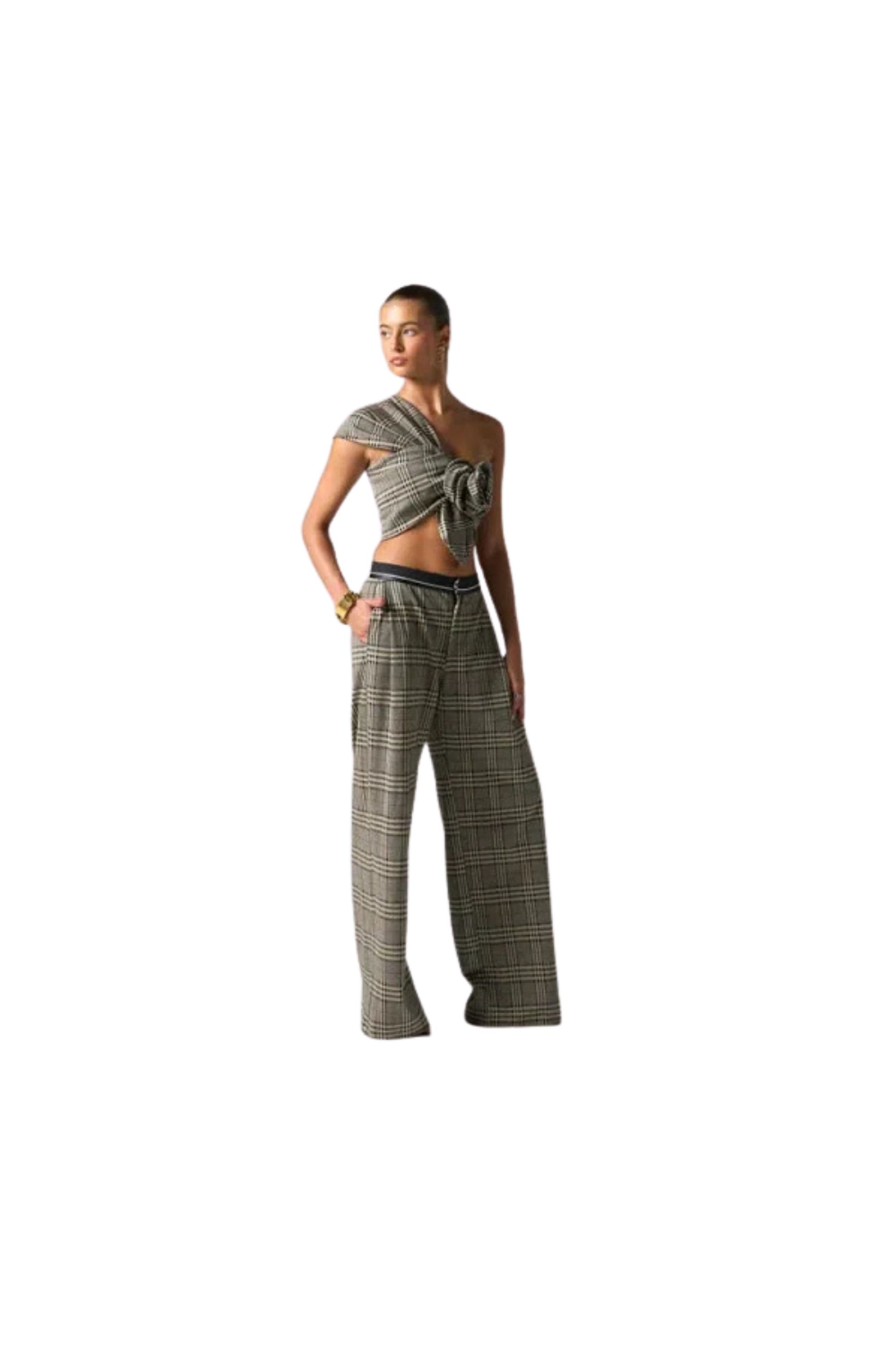 Tailored with a modern nod to classic menswear, the Aubrey Pant is crafted from our stretch plaid in Multi Tartan. Designed to sit at the natural waist, this full-length trouser features a refined waist curtain detail—an internal structure often found in men's suiting—for elevated fit and finish. The relaxed leg and crisp pleats add subtle volume while maintaining sharp structure, making the Aubrey Pant a polished staple with an androgynous edge. Machine wash Cold water Gentle cycle or dry clean Do not bleach Tumble dry low or line dry Cool iron on reverse side Avoid direct steam on metallic thread