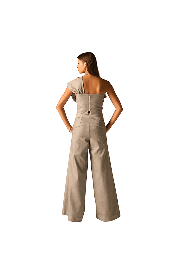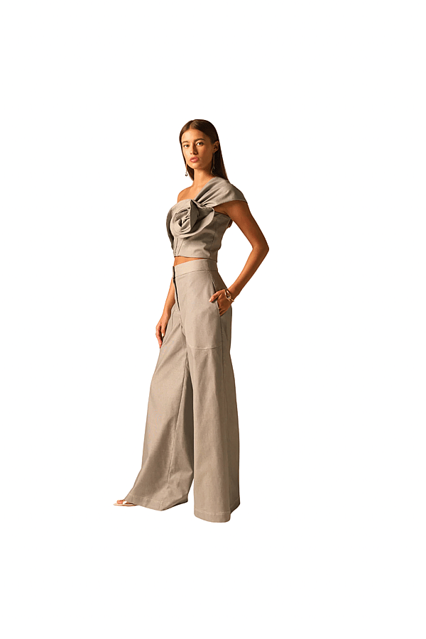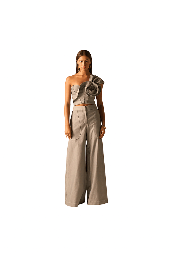 The Oslo Pant in stretch hemp is a modern take on classic tailoring. Featuring a high-rise waist, exaggerated wide-leg silhouette, and oversized curved patch pockets, it offers strong structure with a soft hand. The minimalist design is elevated by precise seaming and architectural shape, delivering a clean, sculptural finish. Spot Clean Iron with medium to high temperature if needed or Dry Clean