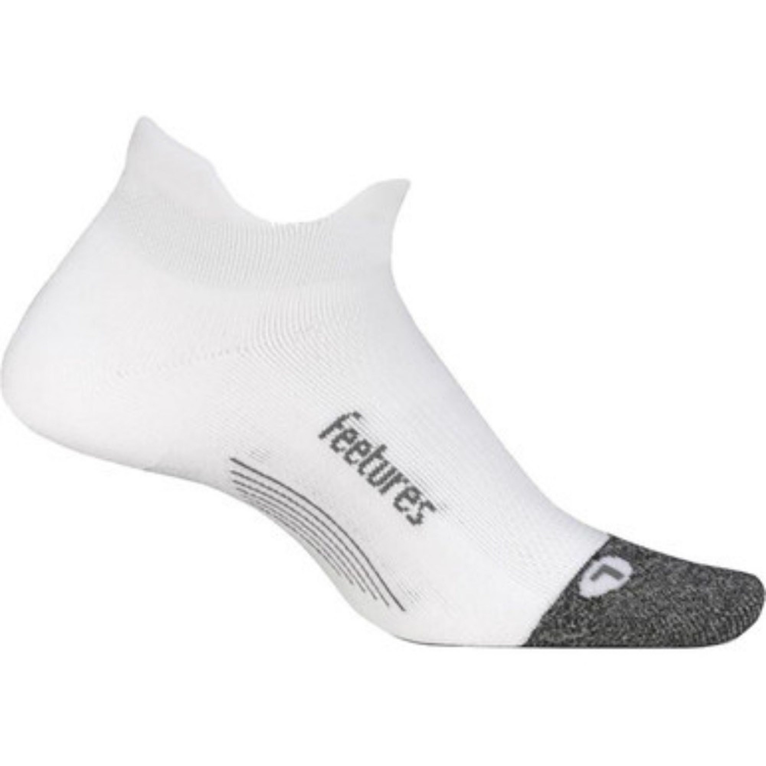 As soon as you try on a pair, you know that Feetures Elite socks are special. Thanks to the technically advanced Sock-LockTM support system, your foot and sock become one. The sock fits so well, its almost as if its not even there. No show design. Cushioned tab protects your Achilles tendon and also helps keep the sock in place. Anatomical right and left foot design enhances fit, delivering maximum comfort and protection by helping to eliminate blisters. High density cushioning provides extra protection in high impact areas. The Perfect Toe gives you a no irritation toe seam.