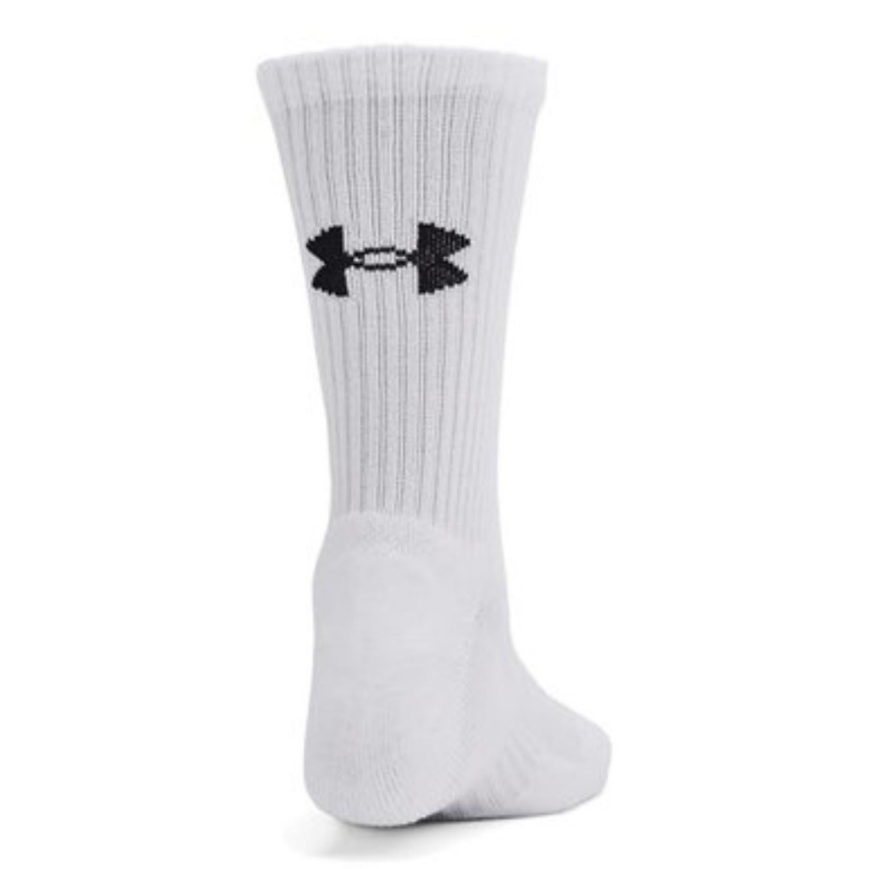 Lightweight, soft cotton-blend fabric for all-day comfort. Material wicks sweat & dries really fast. Locked-in fit design keeps sock securely on heel for an adjustment free fit that won't fall down. Medium cushioning placed strategically throughout foot protects high-impact areas without added bulk. Mesh panels on top of foot for added breathability. Built-in arch support helps reduce foot fatigue. 3 pairs of socks.