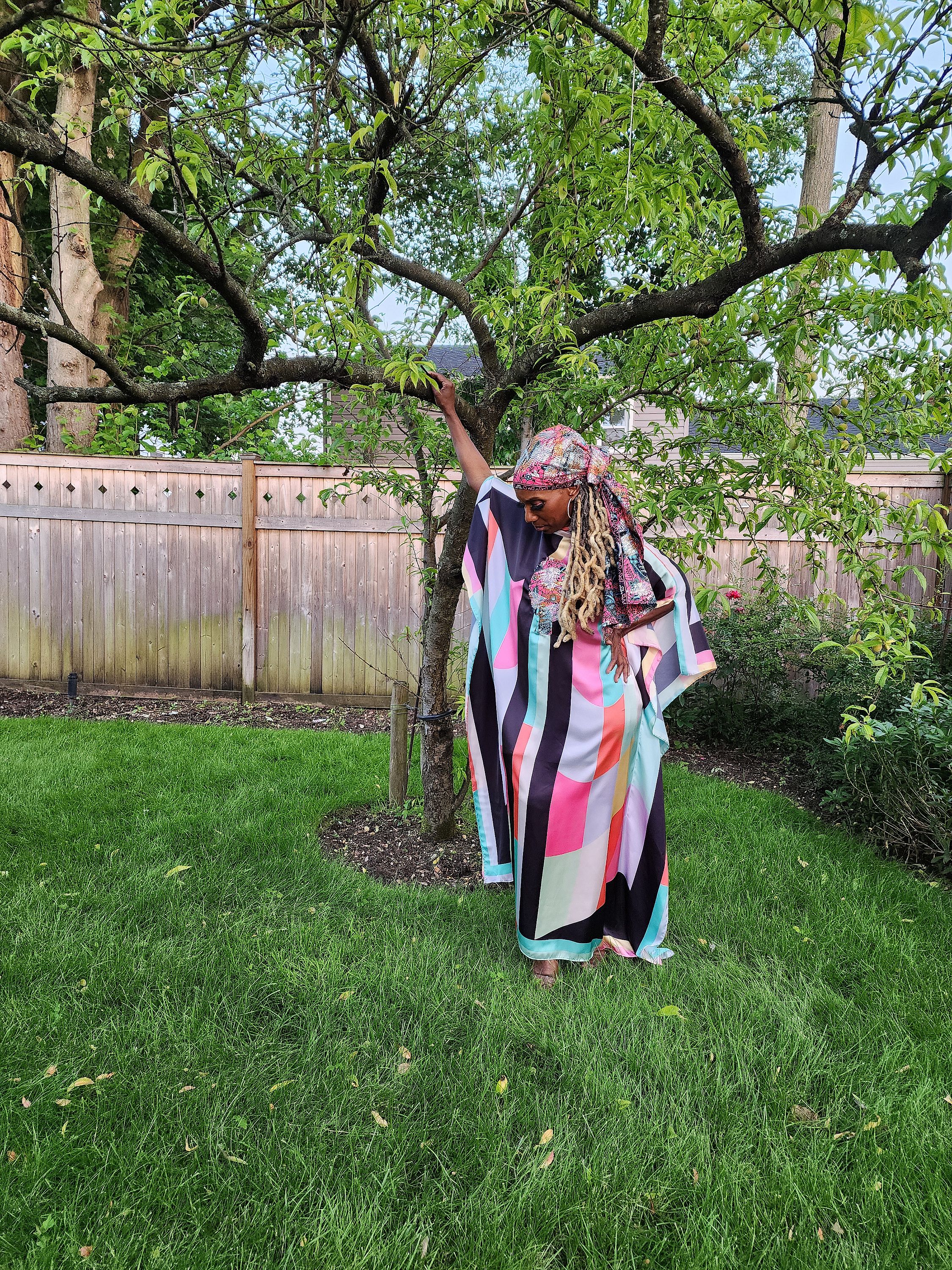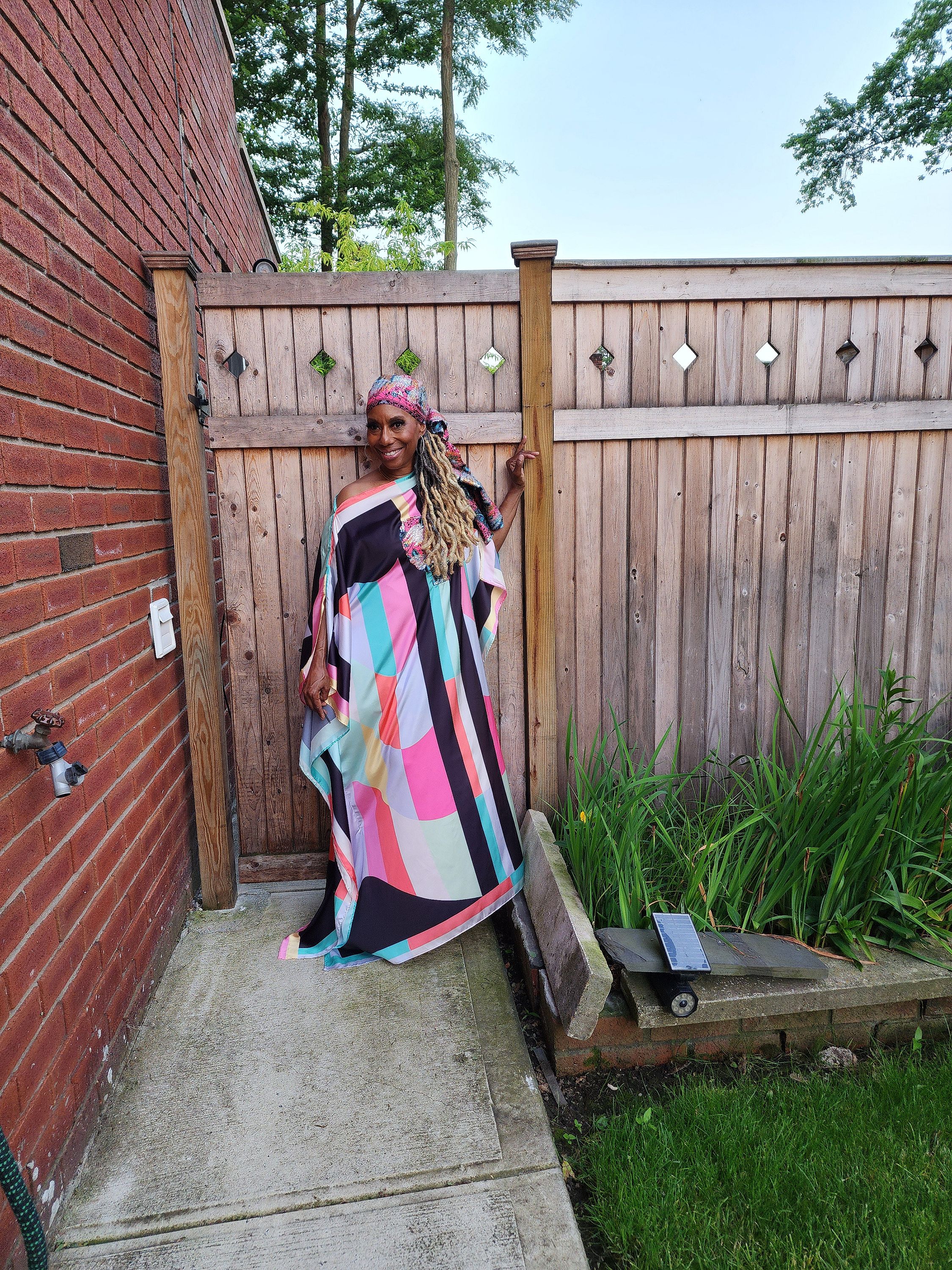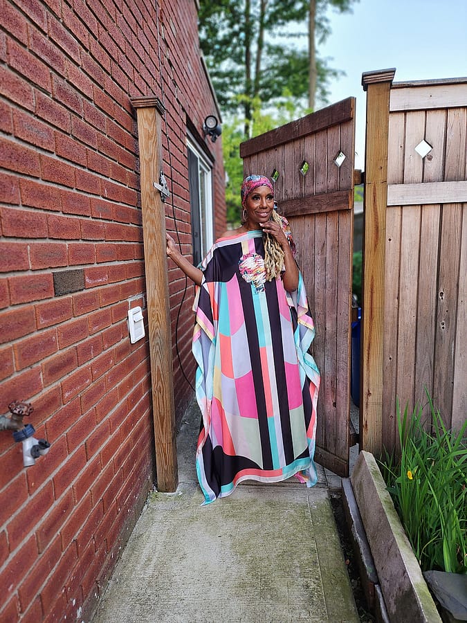 Simple and carefree the LiiLiiGiirl Kaftan Dress the perfect vacation companion. Light weight and flowy with signature sequin ankara LiiLiiGiirl emblem.