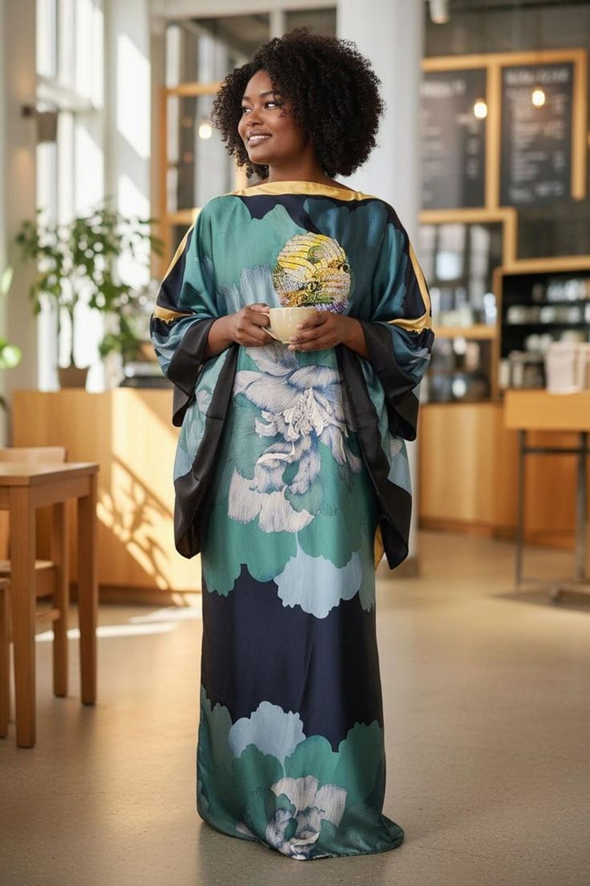 Simple and carefree the LiiLiiGiirl Kaftan Dress the perfect vacation companion. Light weight and flowy with signature sequin ankara LiiLiiGiirl emblem. Length of dress from top of dress to hem is 52 inches. The model 5' wearing a 4 inches heel. If you are taller than 5'4" it will not look be as long on you as it is showing on the model. Perfect as a luxury vacation gift, birthday surprise, or thoughtful gesture for plus-size queens. Please note much like a t-shirt portions of this dress is produced and portions of this dress is hand cut and sewn.