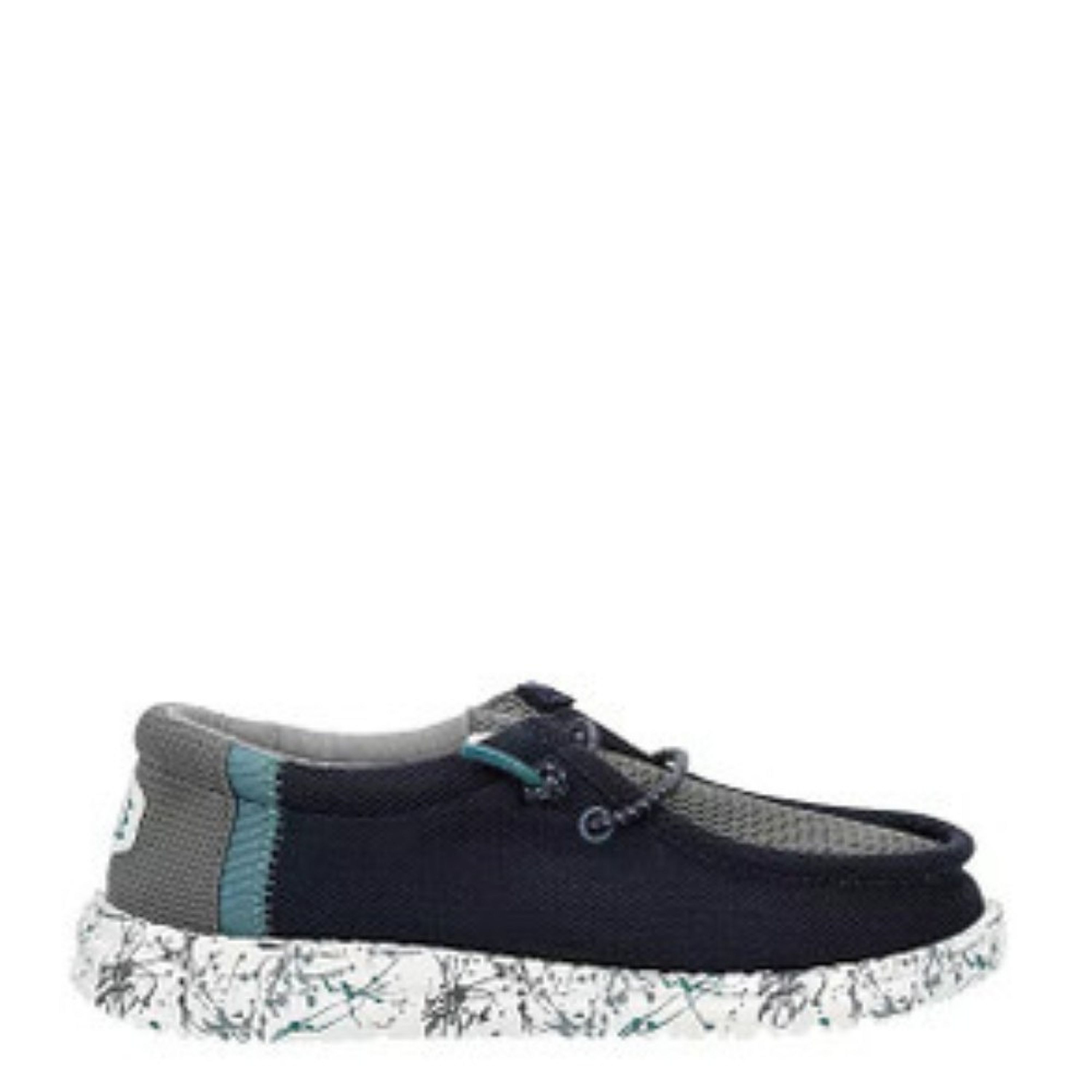 HEYDUDE Wally Youth Little/Big Kid Boys Slip-On Sneaker Relax as he roams in the HEYDUDE Wally Youth boys Slip-On Sneaker. With an airy mesh & knit upper featuring elastic laces for a secure fit, this Sneaker is made for travel. The removable foam insole offers cushioning, while the lightweight outsole sets him free to explore unfettered. Textile upper Slip-On w/ elastic laces Removable foam insole Splattered midsole Traction outsole.