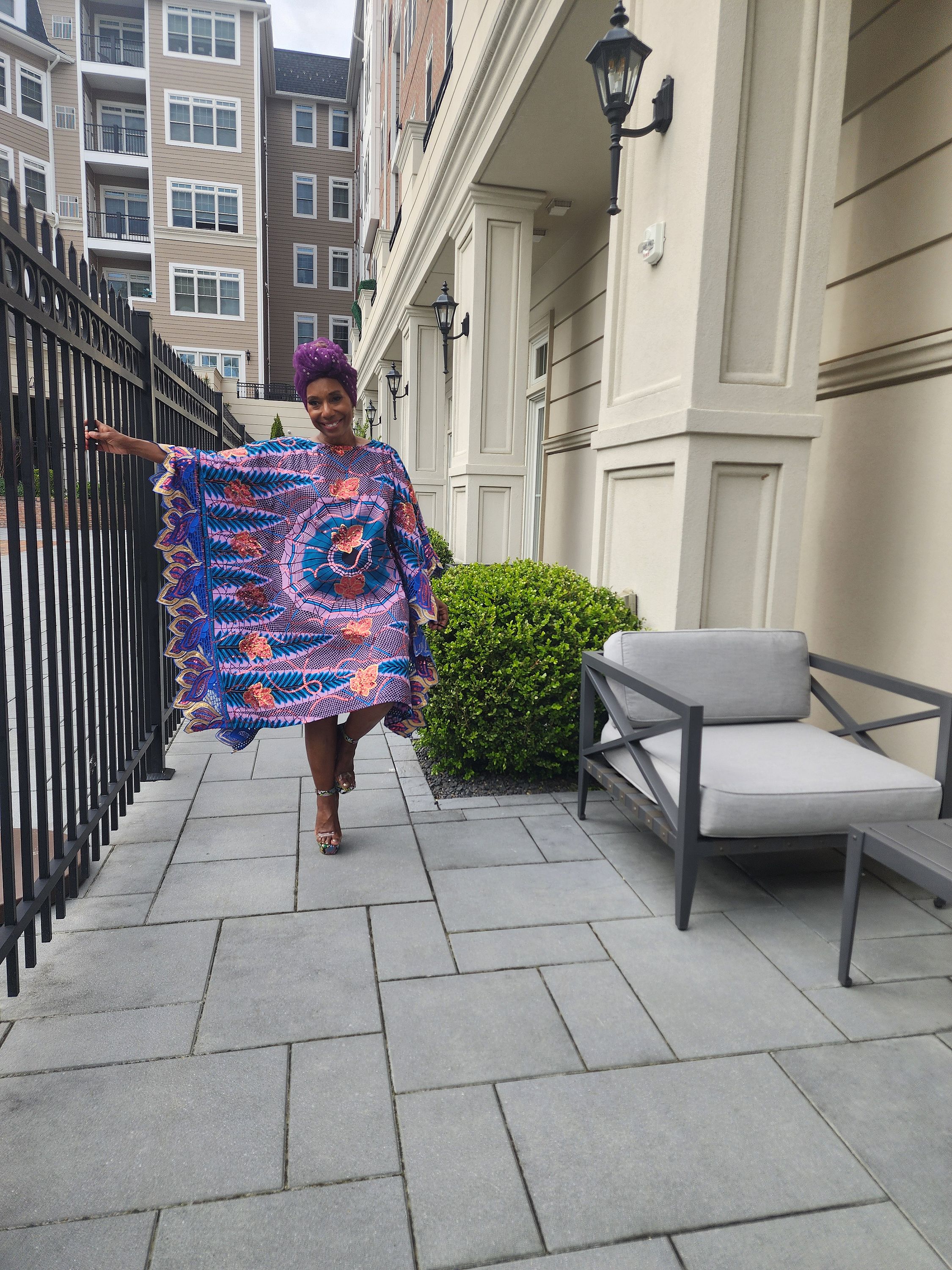 A touch of vintage with embroidery African Print Kaftan dress is the perfect fit for hosting a party at home to brunch with the girls. Made from one of a kind Sequin Embroidered African Wax fabric. It is the perfect 1970's meets African Princess fit.