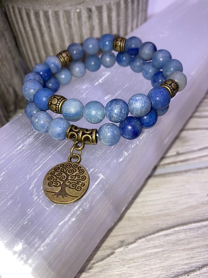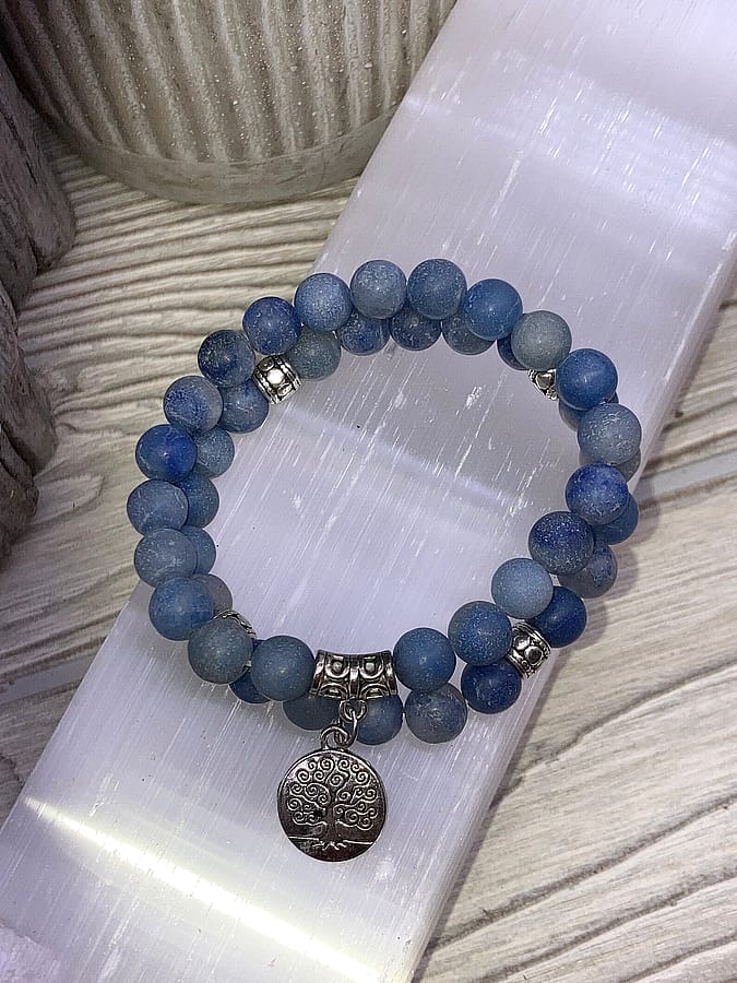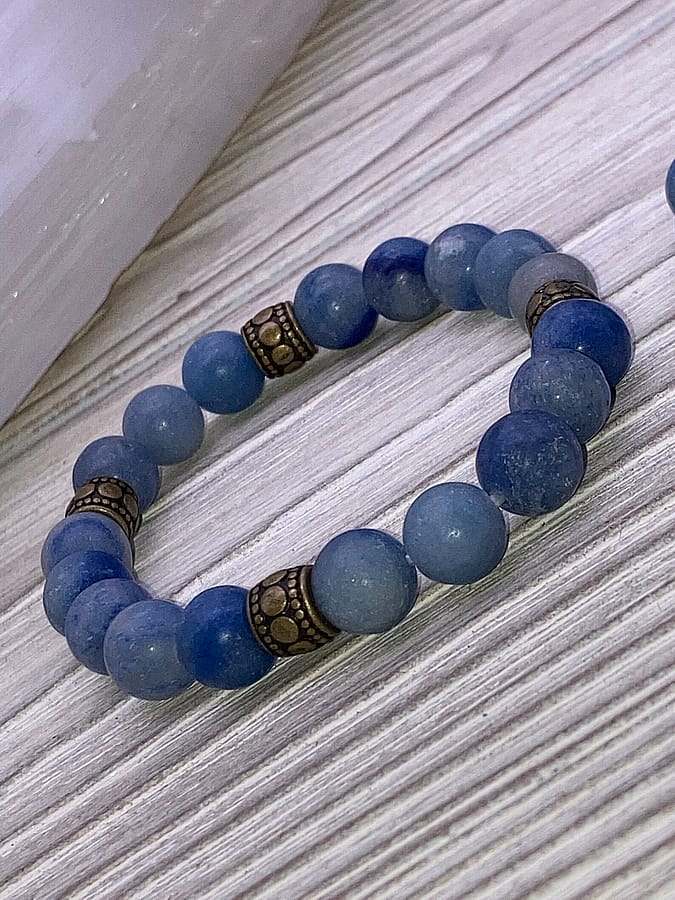 Hand made – matte Blue Aventurine 8mm, natural gemstone beads are strung on durable and stretchy, latex-free cording for a comfortable fit.