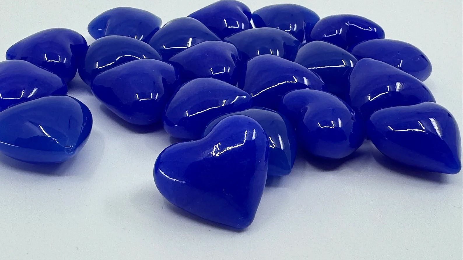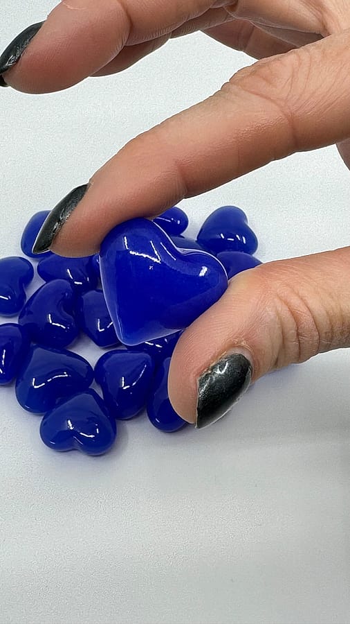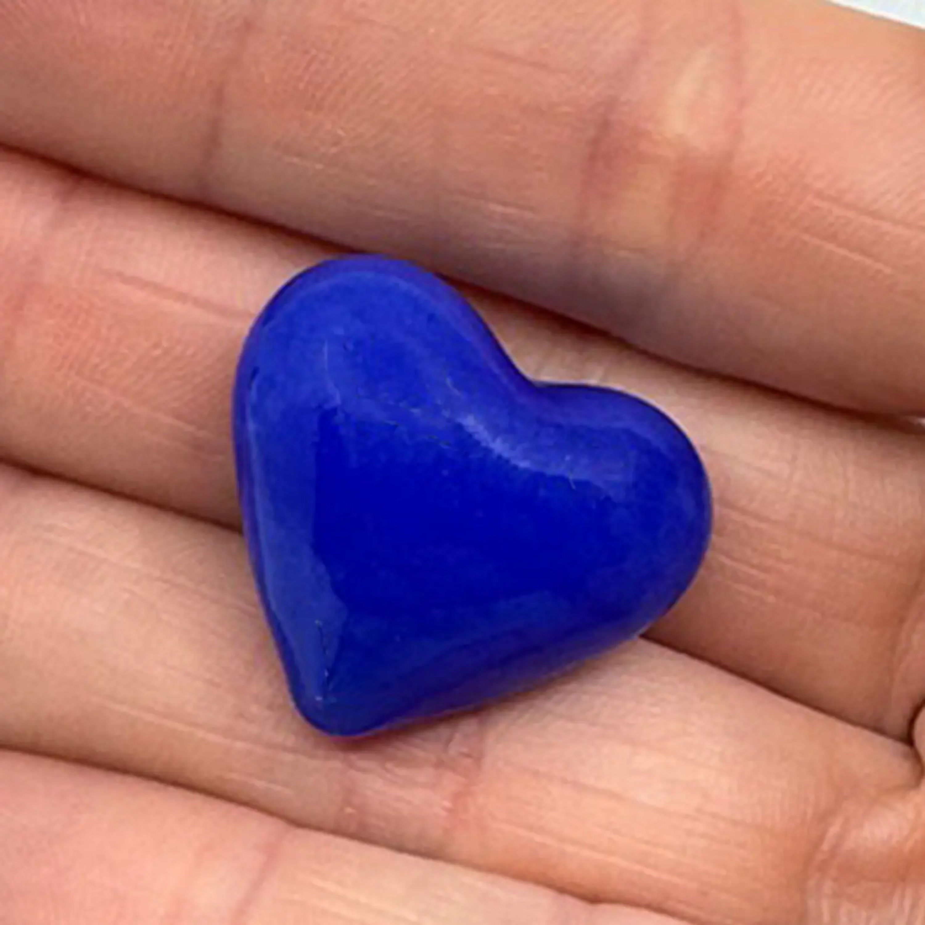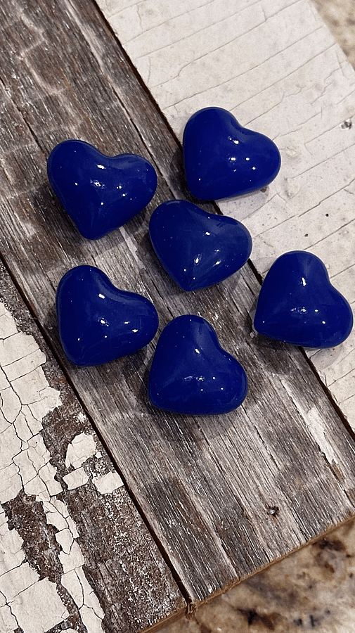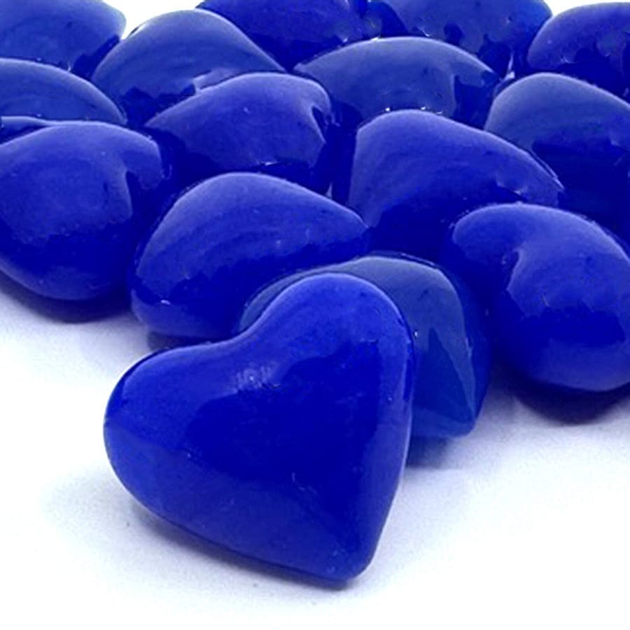 Great stocking stuffer! For Mother's Day – Beautifully vibrant, Royal Blue Glass Puffy Hearts - a heart-warming sentiment without uttering a word. They offer a powerful expression of love that can be used: as a party favor, decoration, secretly left behind for your love to find, slip in a pocket, have a bunch displayed in a dish, or added to any gift. They are opaque with unique striations of vibrant aqua color, typical of blown glass. These Puffy Hearts measures approximately 1"x 1" x 3/4"
