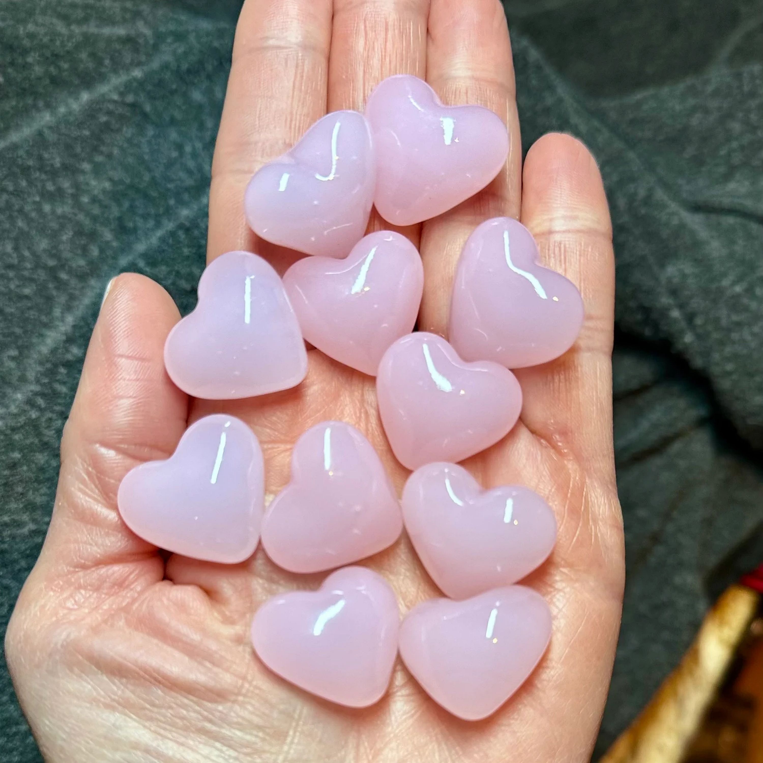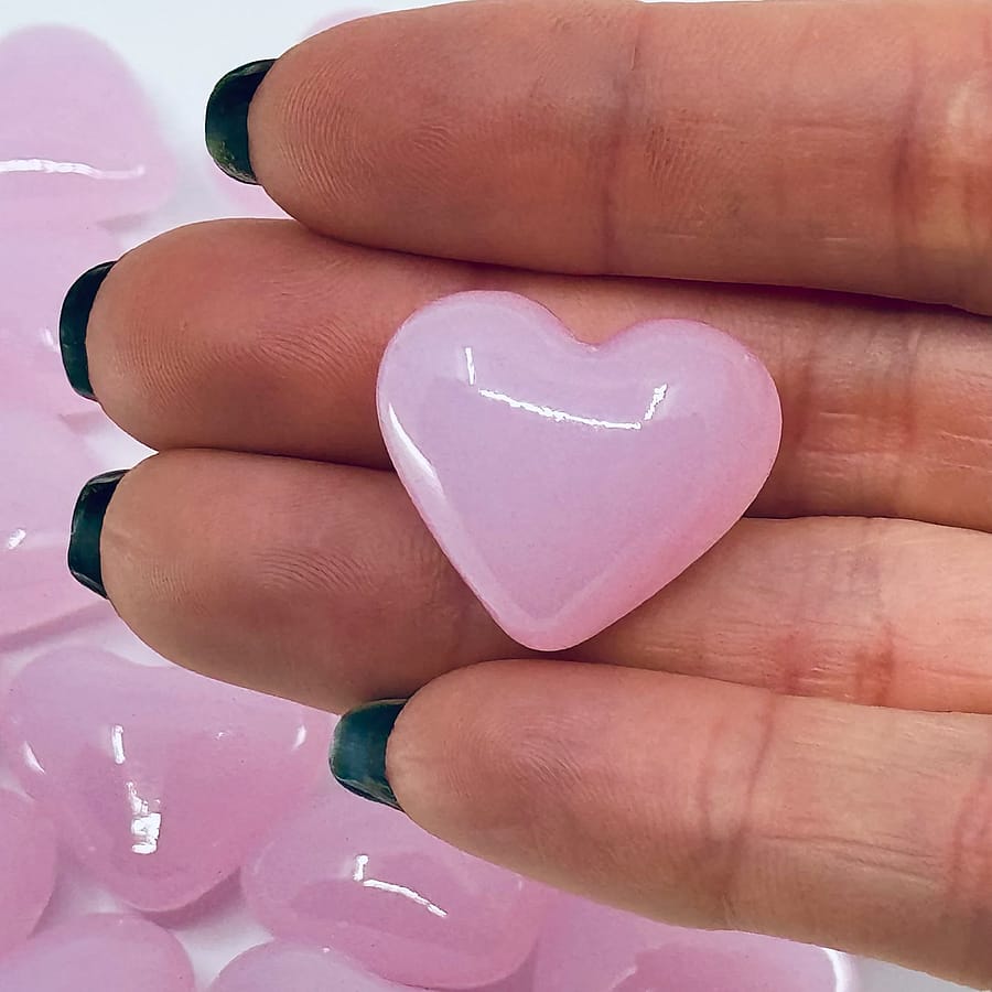Great stocking stuffer! Beautifully vibrant, Pink Glass Puffy Hearts - a heart-warming sentiment without uttering a word. They offer a powerful expression of love that can be used: as a party favor, decoration, secretly left behind for your love to find, slip in a pocket, have a bunch displayed in a dish, or added to any gift. They are opaque with a gentle pink hue, typical of blown glass. These Puffy Hearts measures approximately 1"x 1" x 3/4"