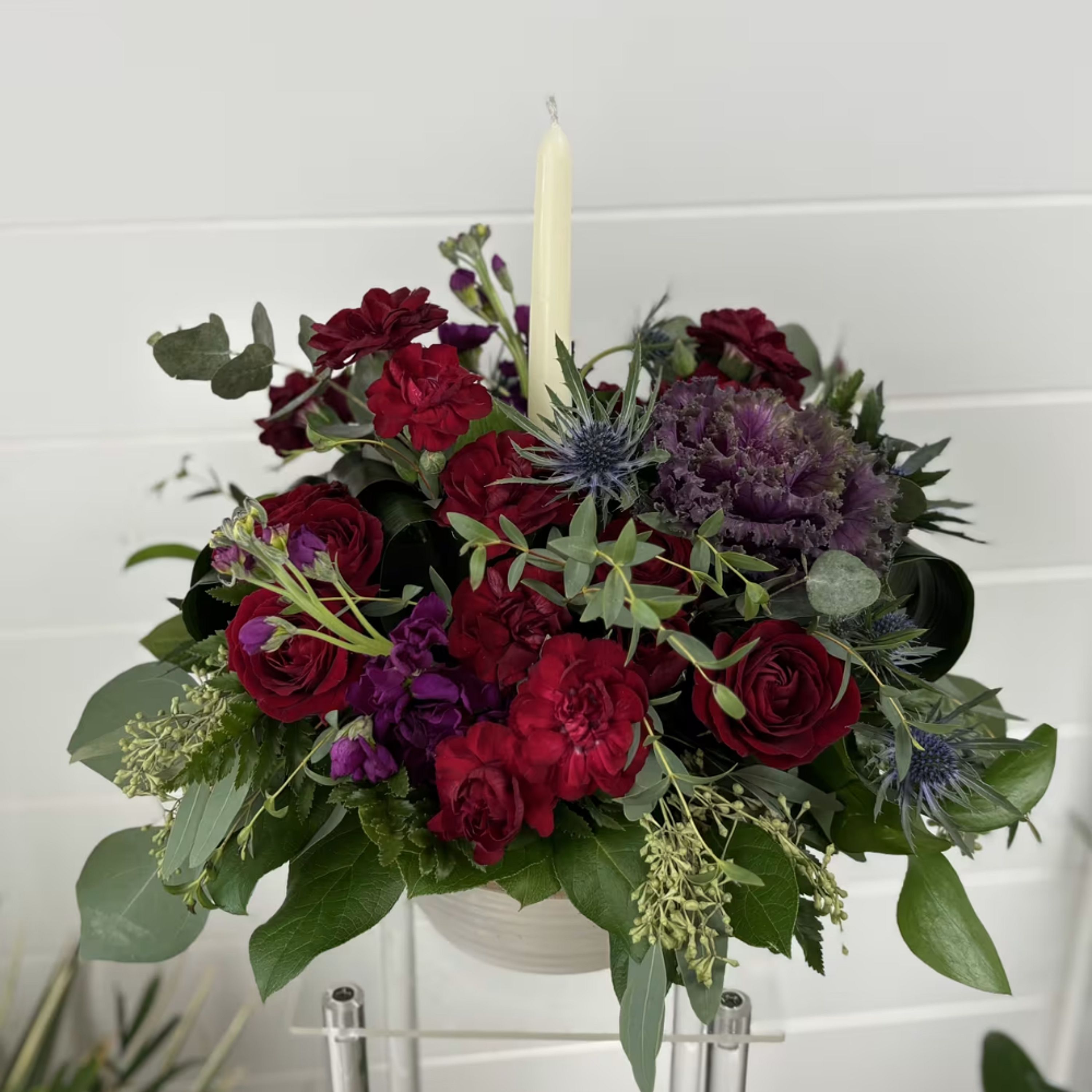 Roses, thistle, seeded euc,, kale, stock