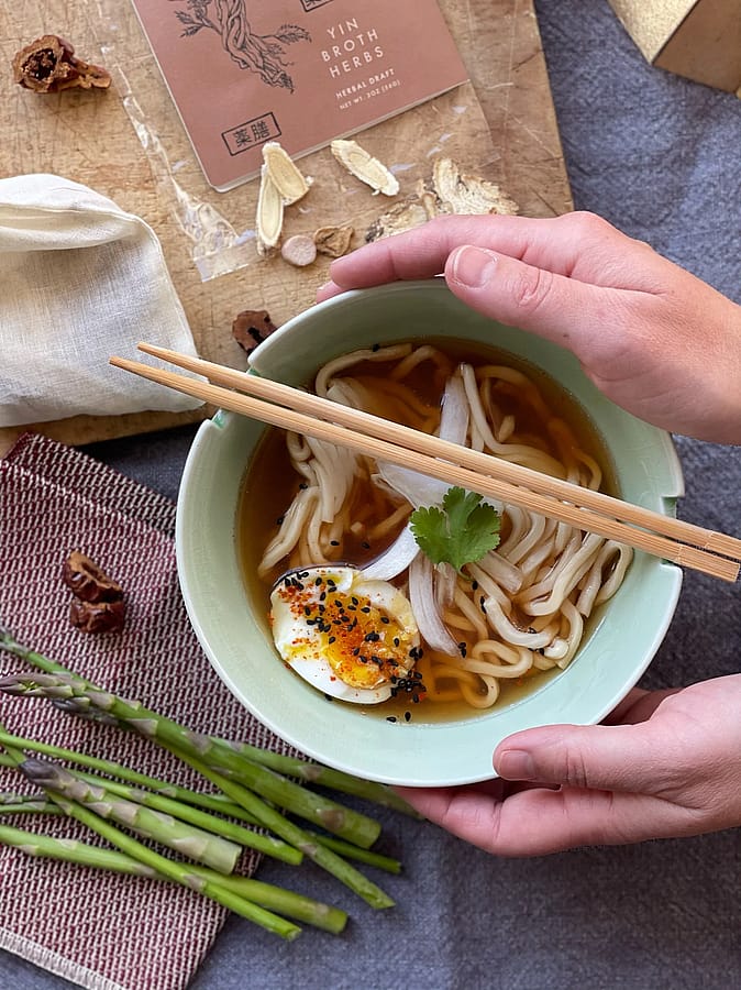 Yin Yang Herbs are a modern take on classic Chinese Medicine teas for everyday balance and nourishment. This kit makes a large batch of deeply nourishing tea that can be taken as a simple tea or simmered into broths, soups, grains, and recipes. The herbs impart a light, subtly sweet flavor that complements both savory and sweet preparations. This blend of traditional Asian herbs harmonizes Yin and Yang to support balanced Qi (energy), vitality, and resilience.
