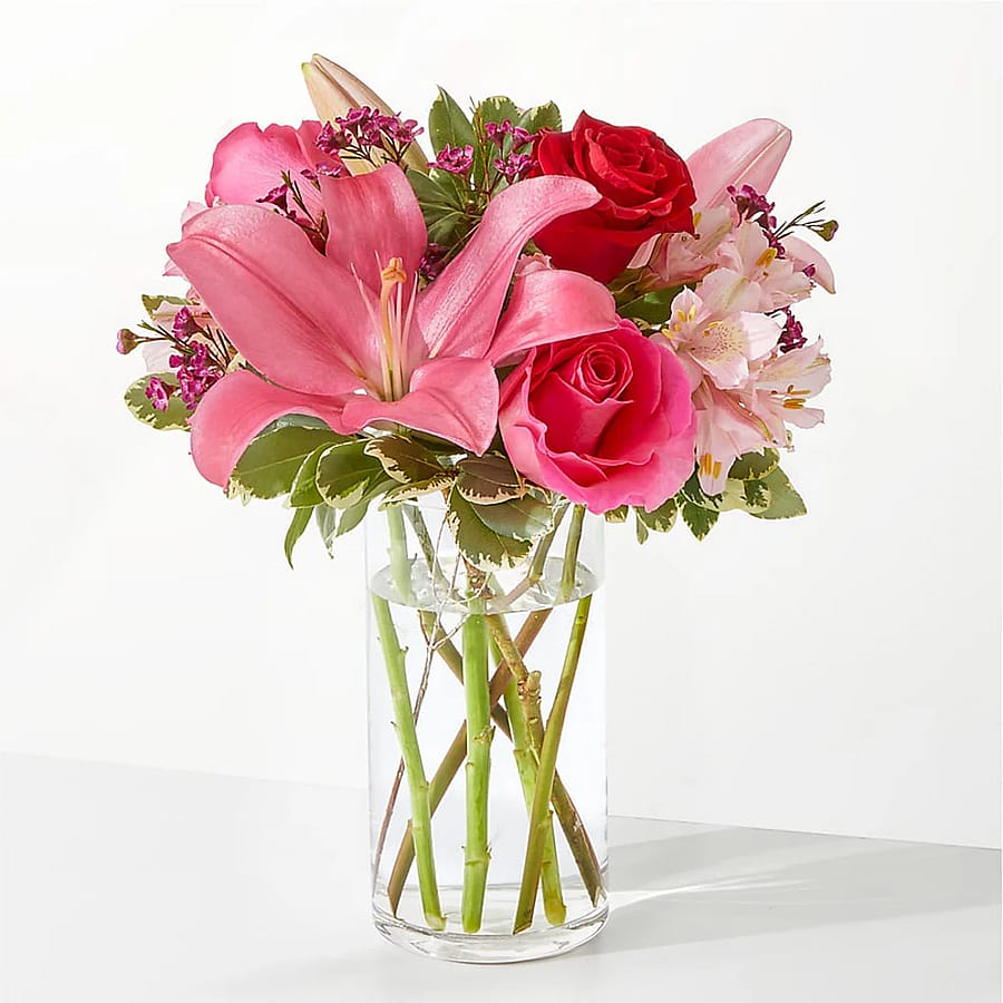 Fall in love with the red and pink florals of our Lucky in Love Bouquet, a timeless blend of staple stems to make your anniversary, Valentine's Day, or just another Tuesday even more swoonworthy.