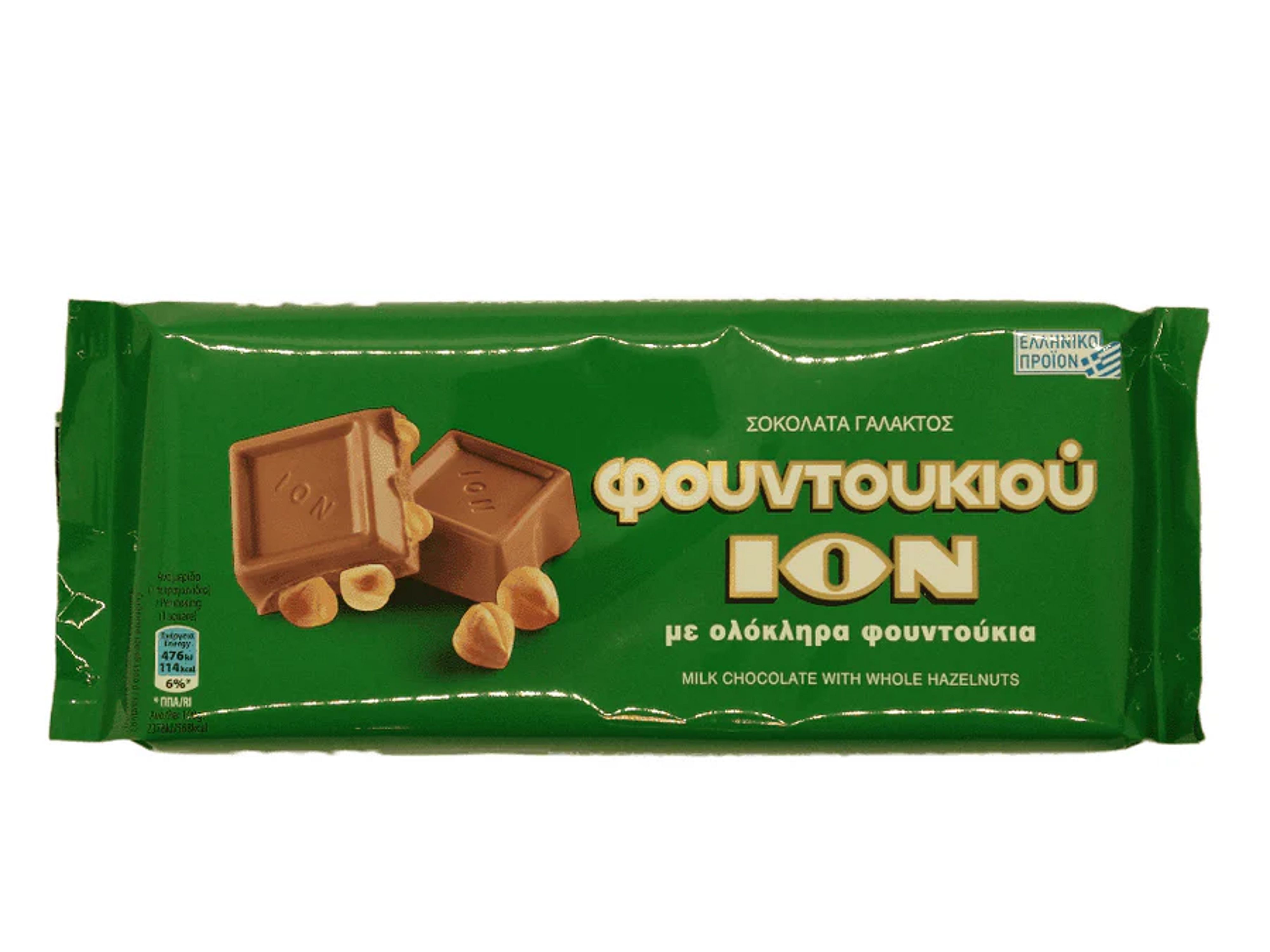 Classic Greek chocolate with crunch! The ION Whole Hazelnut Milk Chocolate Bar combines rich, creamy milk chocolate with perfectly roasted whole hazelnuts for a satisfyingly crunchy, indulgent treat. A beloved favorite in Greece for generations, this chocolate bar pairs beautifully with coffee or makes a delicious snack anytime.