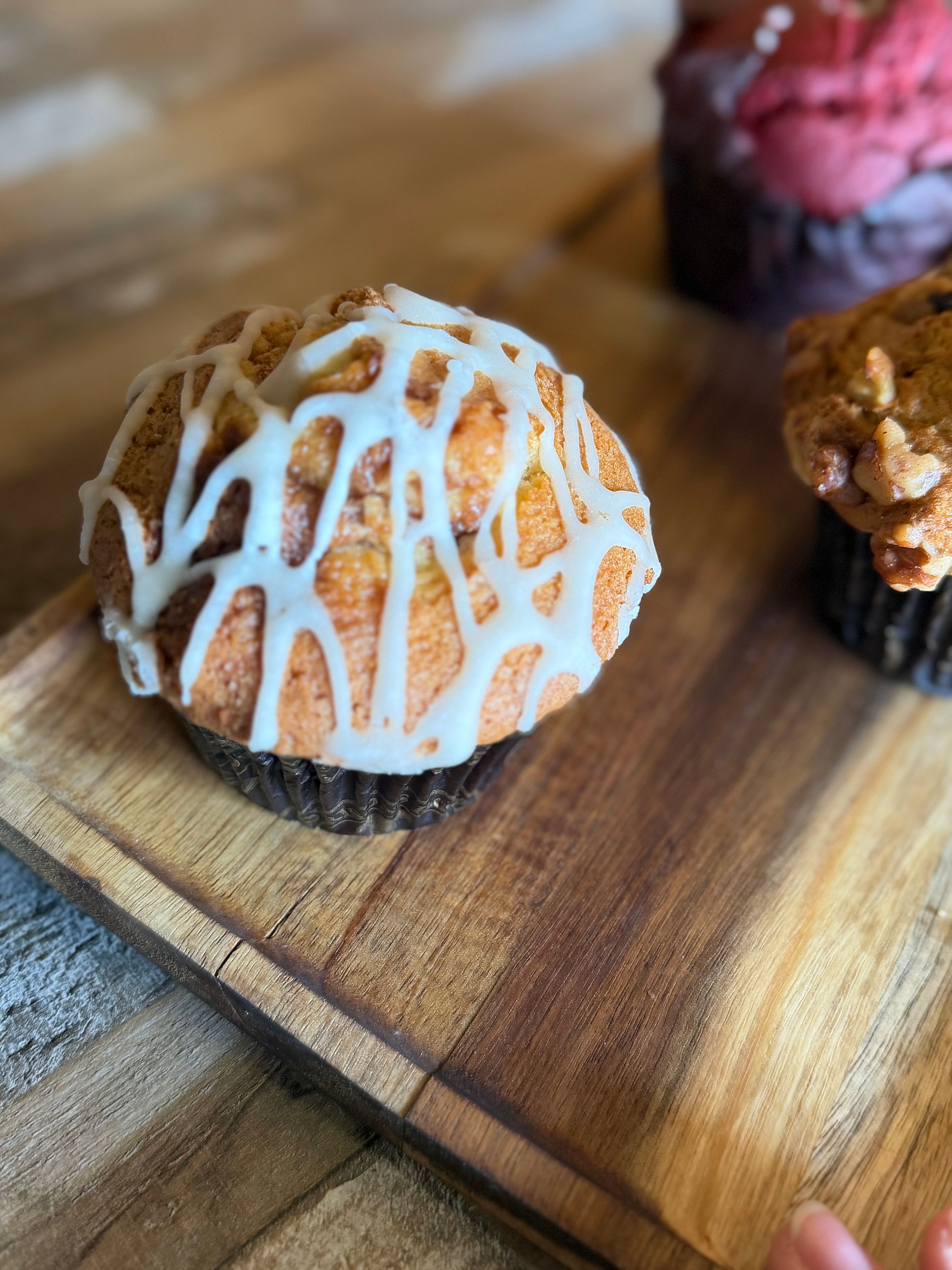 Cinn-a-Muffin is soft, fluffy, and swirled with warm cinnamon spice, then finished with a generous drizzle of sweet vanilla glaze for the perfect melt-in-your-mouth bite.