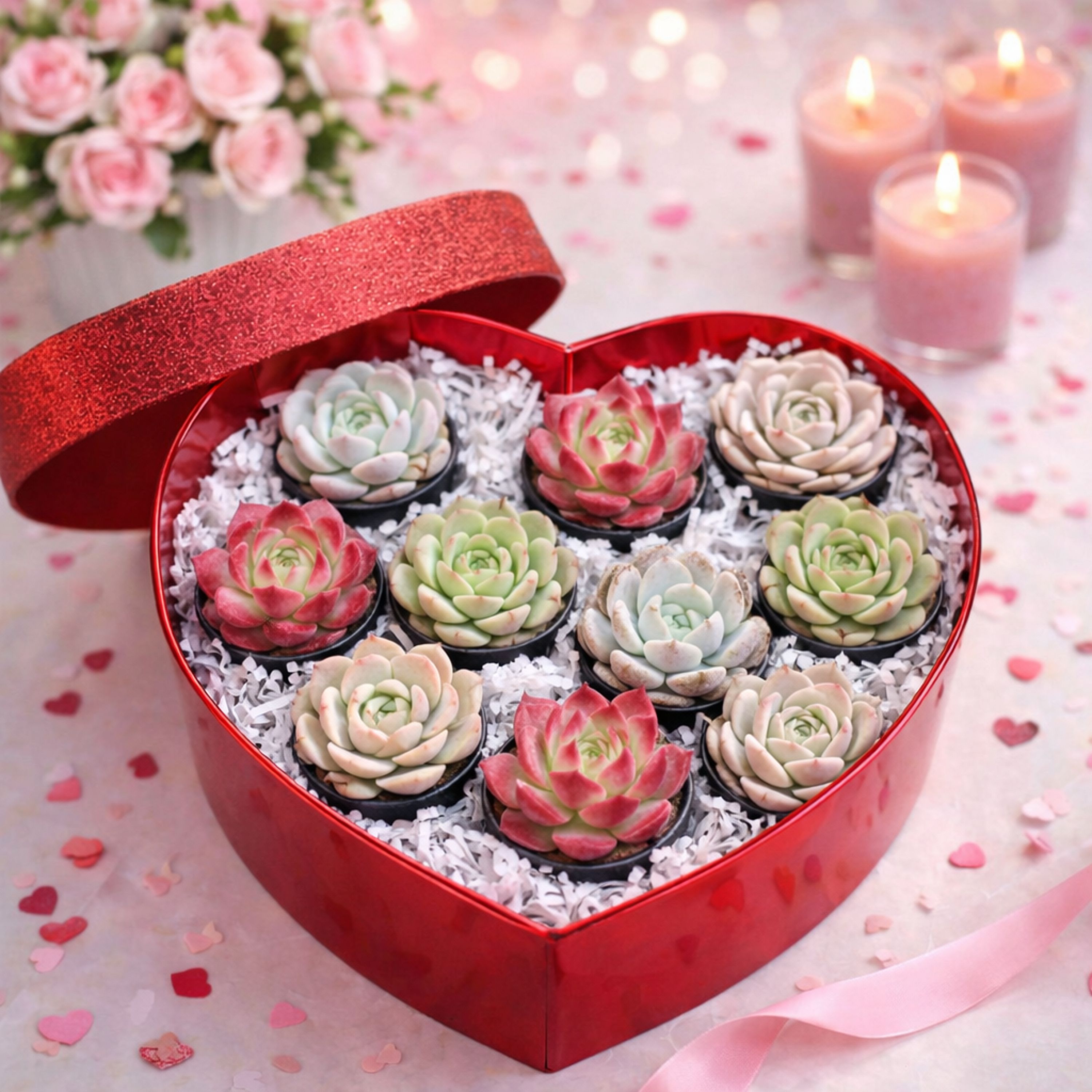 Succulent Rosette Echeverias in a Heart Box