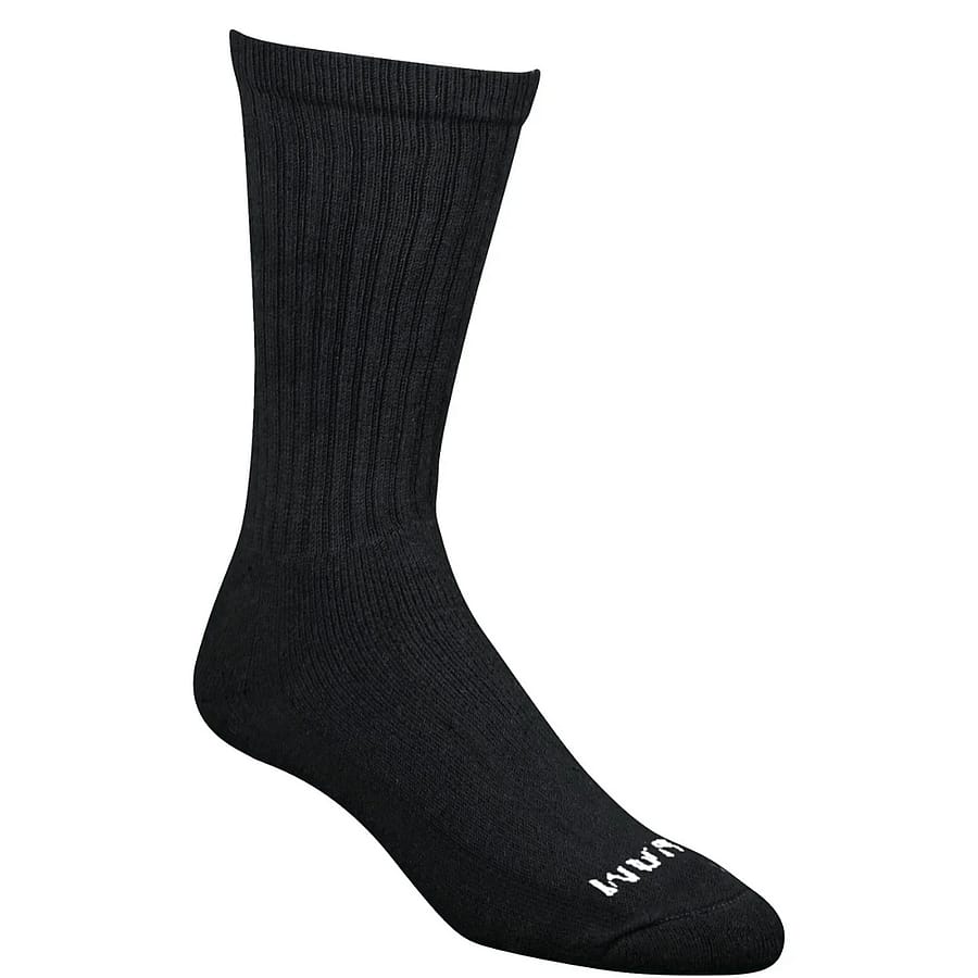 Step into the cushioned, Cotton comfort of Wigwam's Crew sock. Available in Black Medium or Extra-Large. Features: Durability. Cushioned Foot. Vent Panel. Materials: 83 Cotton 16 Polyester 1 Spandex